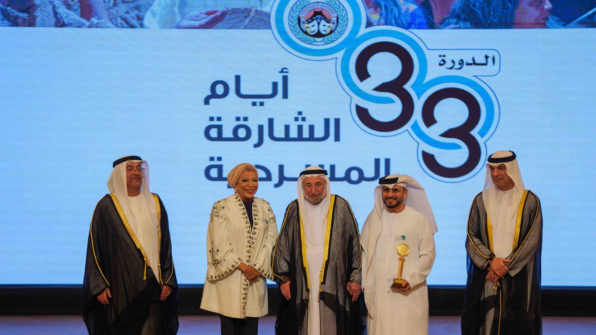 The opening ceremony was attended, alongside His Highness the Ruler of Sharjah, by Dr. Abdullah Belhaif Al Nuaimi, Chairman of the Consultative Council of the Emirate of Sharjah; Major General Saif Al Zari Al Shamsi, Commander-in-Chief of Sharjah Police; Abdullah Mohammed Al Owais, Chairman of the Department of Culture; Dr. Mansour bin Nassar, Head of the Legal Department of the Government of Sharjah; Jamal Al Tarifi, President of Al Qasimia University; and a number of senior officials, artists, intellectuals, media professionals, and theatre lovers and enthusiasts.