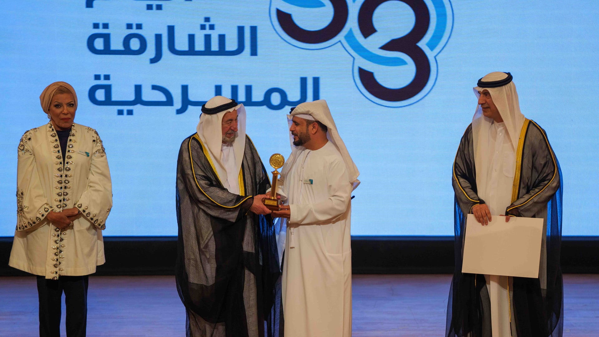 His Highness the Ruler of Sharjah honoured the Emirati artist Abdullah Rashid with the “Honored Local Personality Award” for this edition, and the Omani artist Fakhriya Khamis, the winner of the “Sharjah Award for Arab Theatrical Creativity” in its seventeenth edition. His Highness also honoured the “Fawanees theatre” from the Kingdom of Morocco, which won the “Sheikh Dr. Sultan bin Mohammed Al Qasimi Award for Best Arab Theatrical Work 2023” for her show “Tekanza...The Story of Tuda.” The award was received by the show’s director, Amin Nasour.