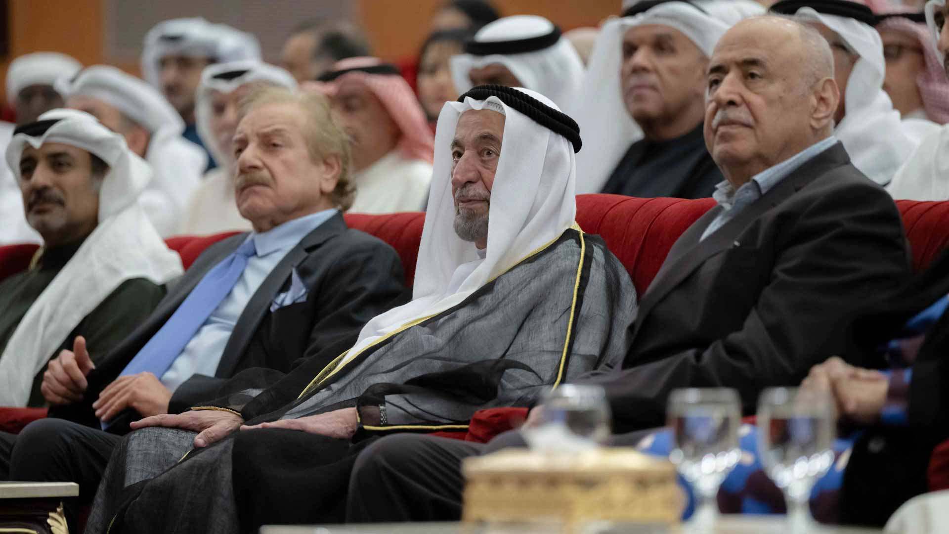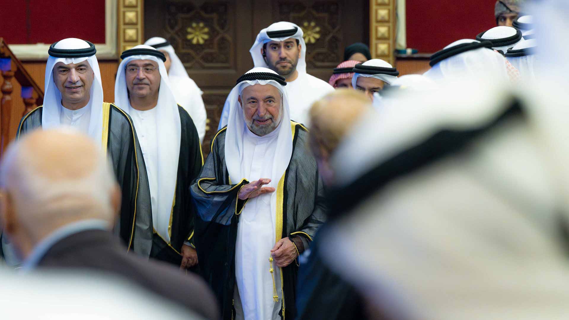 His Highness honoured the winners of the Sharjah Award for Theatrical Writing (theatrical scripts for adults), in which the following won: Saudi writer Ahmed Musa Yousef won first place, Omani writer Osama bin Zayed Al Shaqsi won second place, and Omani writer Osama bin Khamis Al Sulaimi placed third.