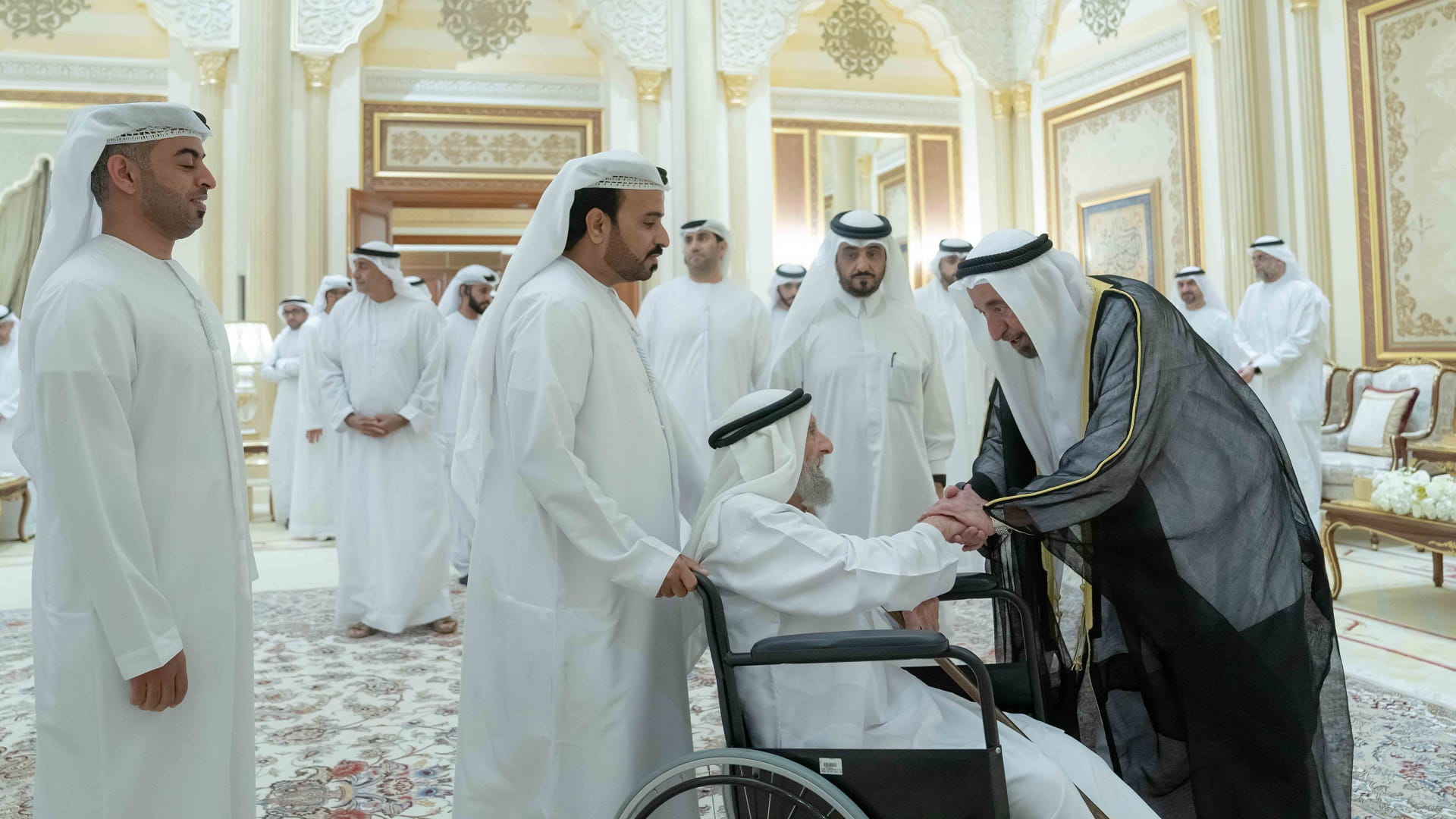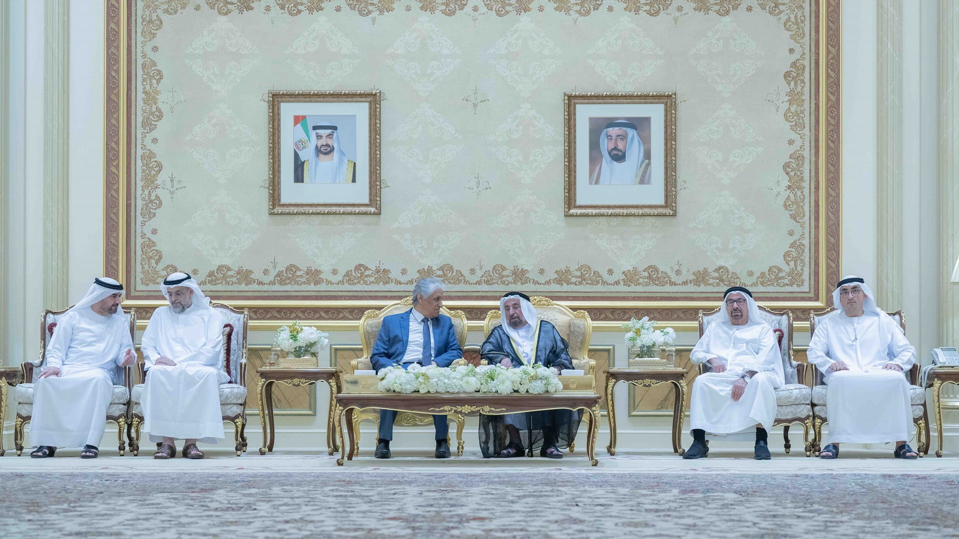 Present at the reception alongside His Highness the Ruler of Sharjah were Sheikh Faisal bin Khalid bin Sultan Al Qasimi; Sheikh Saud bin Khalid Al Qasimi, Advisor at the Office of His Highness the Ruler of Sharjah; Sheikh Mohammed bin Saud Al Qasimi, Head of the Central Finance Department; Sheikh Khalid bin Abdullah Al Qasimi, Chairman of Sharjah Seaports, Customs and Free Zones; Sheikh Salem bin Abdulrahman Al Qasimi, Chairman of the Sharjah Ruler’s Office; Sheikh Mohammed bin Humaid Al Qasimi, Chairman of the Department of Statistics and Community Development; Sheikh Fahim bin Sultan Al Qasimi, Chairman of the Government Relations Department; and Sheikh Saqr bin Mohammed Al Qasimi, Chairman of the Board of Directors of the Sharjah Charity International.