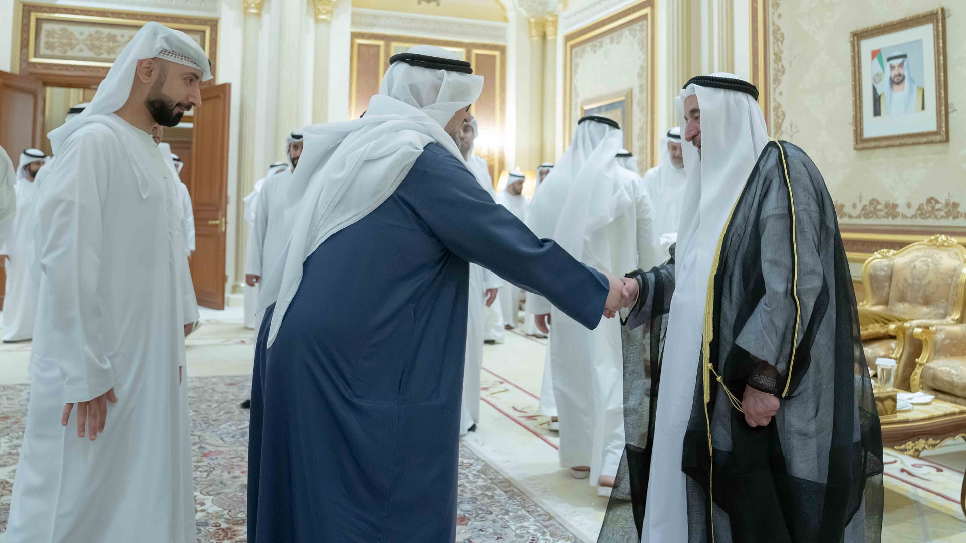 Also present at the reception were Sheikh Mohammed bin Ahmed Al Qasimi, Vice Chairman of the Petroleum Council; Sheikh Faisal bin Saud Al Qasimi, Director of Sharjah International Airport Authority; Sheikh Abdullah bin Mohammed Al Qasimi, Director of the General Authority for Islamic Affairs and Endowments in Sharjah; Abdulrahman bin Mohamed Al Owais, Minister of Health and Prevention; Rashid Ahmed bin Al Shaikh, Chairman of Sharjah Ruler Court (Amiri Diwan); heads and directors of local departments and institutions in Sharjah, and a multitude of citizens.