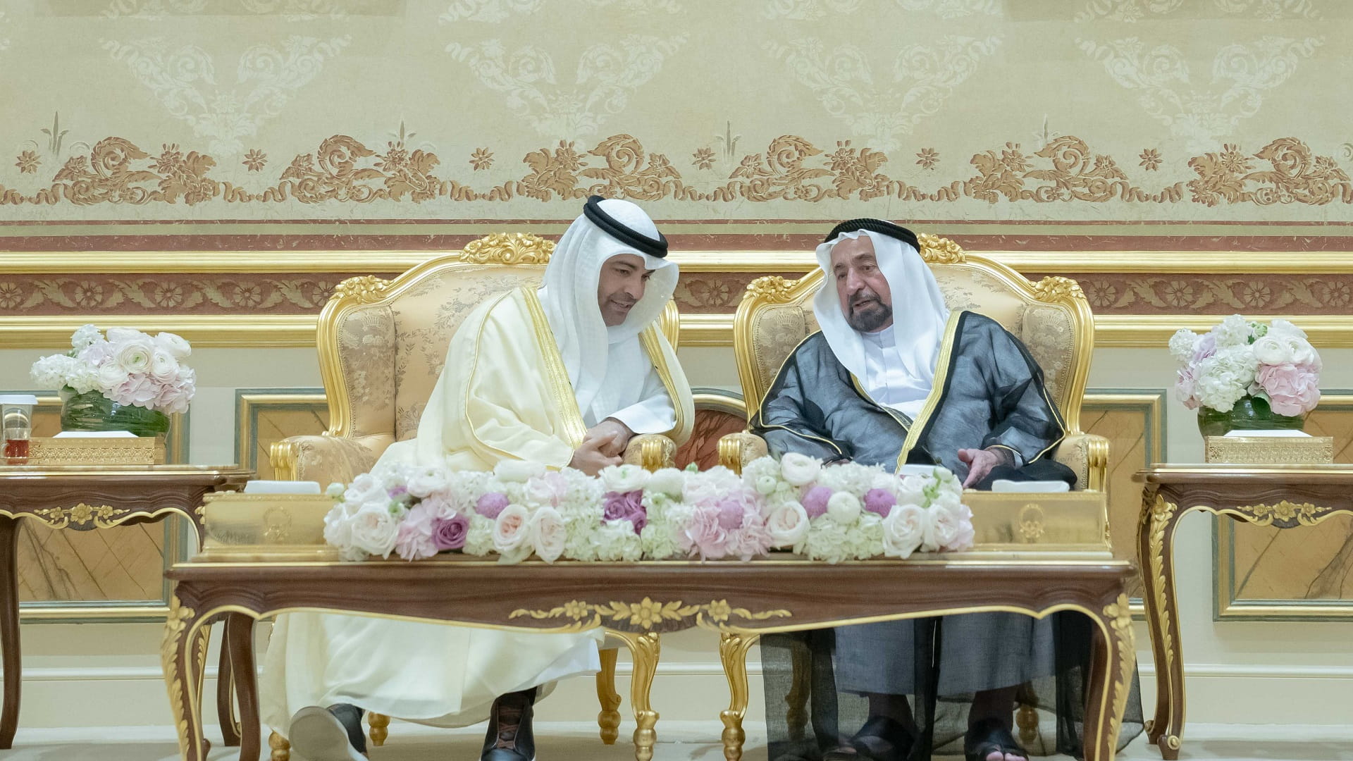 The reception was attended by Sheikh Saud bin Khalid Al Qasimi, Advisor at the Office of His Highness the Ruler of Sharjah; Sheikh Khalid bin Abdullah Al Qasimi, Chairman of the Department of Seaports and Customs and Free Zones Authority; Sheikh Salem bin Abdulrahman Al Qasimi, Chairman of the Sharjah Ruler's Office; Sheikh Mohammed bin Humaid Al Qasimi, Chairman of the Department of Statistics and Community Development; Sheikh Khalid bin Ahmed Al Qasimi, Chairman of the Documents House in Sharjah; Sheikh Haitham bin Saqr Al Qasimi, Deputy Head of the Ruler's Office in Kalba; Sheikh Mohammed bin Ahmed Al Qasimi, Deputy Chairman of the Petroleum Council; a number of sheikhs, His Excellency Abdul Rahman bin Mohammed Al Owais, Minister of Health and Prevention; His Excellency Rashid Ahmed bin Al Sheikh, Chairman of the Emiri Court; senior officials, heads of local and federal departments and institutions.