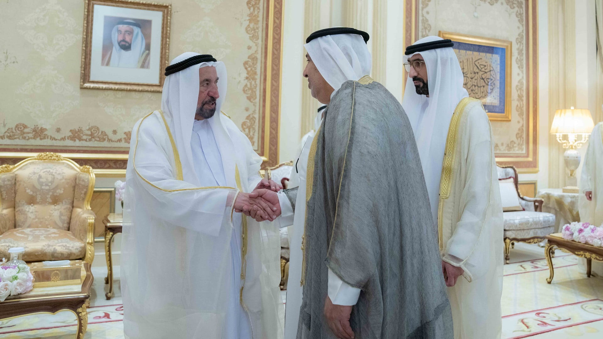 The reception was attended by Sheikh Abdullah bin Mohammed Al Thani, Advisor in the Ruler’s Office; Sheikh Issam bin Saqr Al Qasimi, Advisor in the Ruler’s Office; Sheikh Khaled bin Abdullah Al Qasimi, Chairman for Sharjah Ports, Customs and Free Zones Authority; Sheikh Salem bin Abdulrahman Al Qasimi, the chairman of the Ruler's Office; Sheikh Khalid Bin Issam Al Qasimi, Chairman of the Sharjah Civil Aviation Department; Sheikh Fahim Bin Sultan bin Khalid Al Qasimi, Chairman of the Department of Government Relations; Sheikh Mohammed bin Humaid Al Qasimi, Chairman of the Department of Statistics and Community Development; Sheikh Majid bin Sultan Al Qasimi, Chairman of the Districts Affairs Department; Sheikh Saud bin Sultan Al Qasimi, Director General of the Sharjah Digital Department; Sheikh Sultan bin Abdullah Al Thani, Director of the Sharjah Civil Aviation Department; Sheikh Saud bin Mohammed Al Qasim, CEO of Real Estate Sector at Sharjah Asset Management; Sheikh Abdullah bin Mohammed Al Qasimi, Director of Sharjah General Authority of Islamic Affairs & Endowments;, and a number of sheikhs; Dr. Abdullah Belhaif Al Nuaimi, Chairman of the Sharjah Consultative Council; Rashid Ahmed bin Al-Sheikh, Head of the Emiri Court; and Senior officials of local and federal departments.
