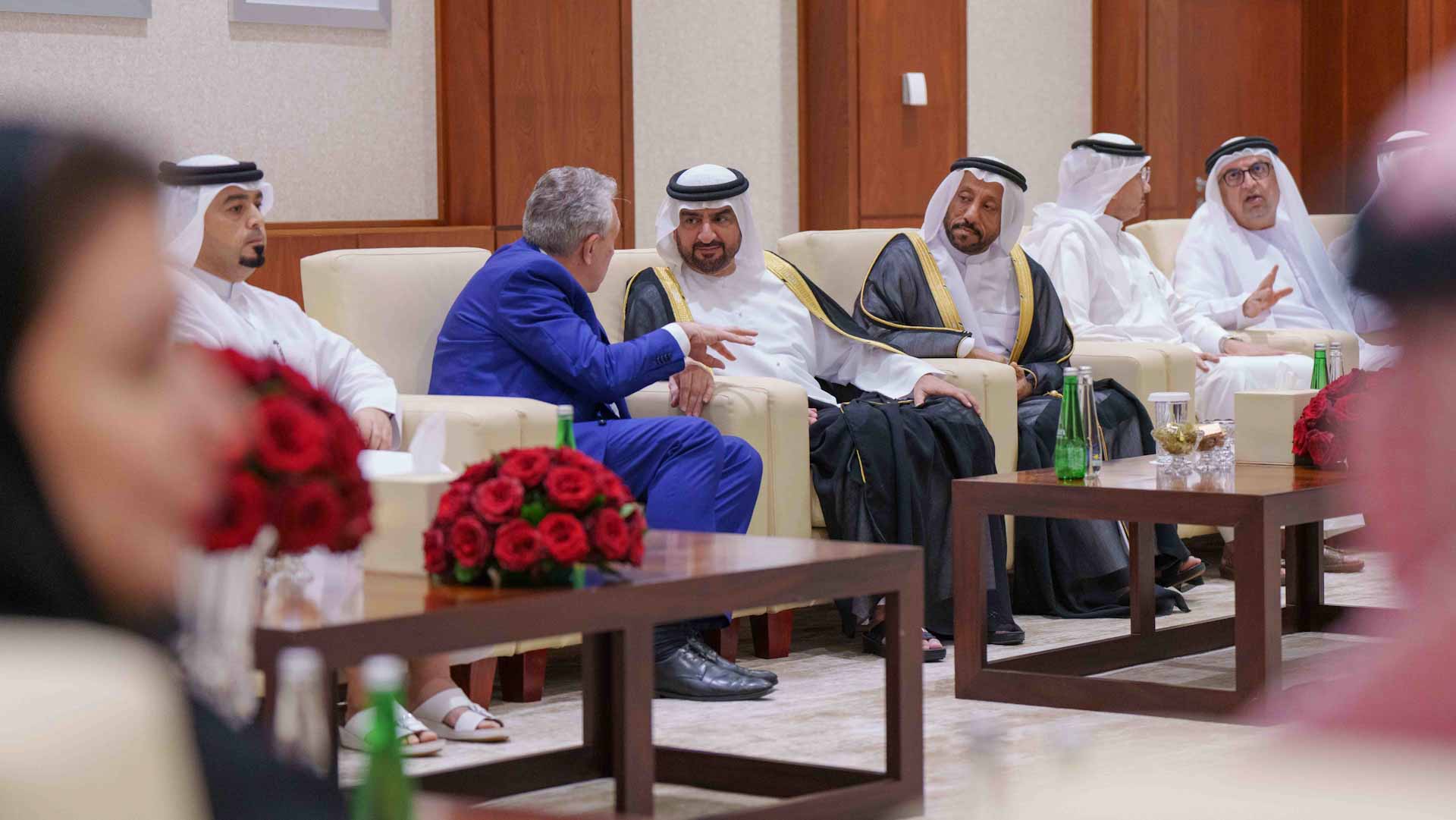 Major General Saif Al Zari Al Shamsi, Commander-in-Chief of Sharjah Police; Ali Ahmed Ali Abughazyain, Chairman of the Sharjah Fish Resources Authority; Mohammed Ahmed Amin Al Awadi, Director General of the Sharjah Chamber of Commerce and Industry (SCCI); Tariq Saeed Allay, Director General of the Sharjah Government Media Bureau, along with several members of the Chamber's Board of Directors and the Board of Trustees of the Award, as well as senior officials and diplomats in the country, representatives of chamber federations, UAE and Gulf chambers of commerce and industry, and a gathering of private sector representatives and businessmen.