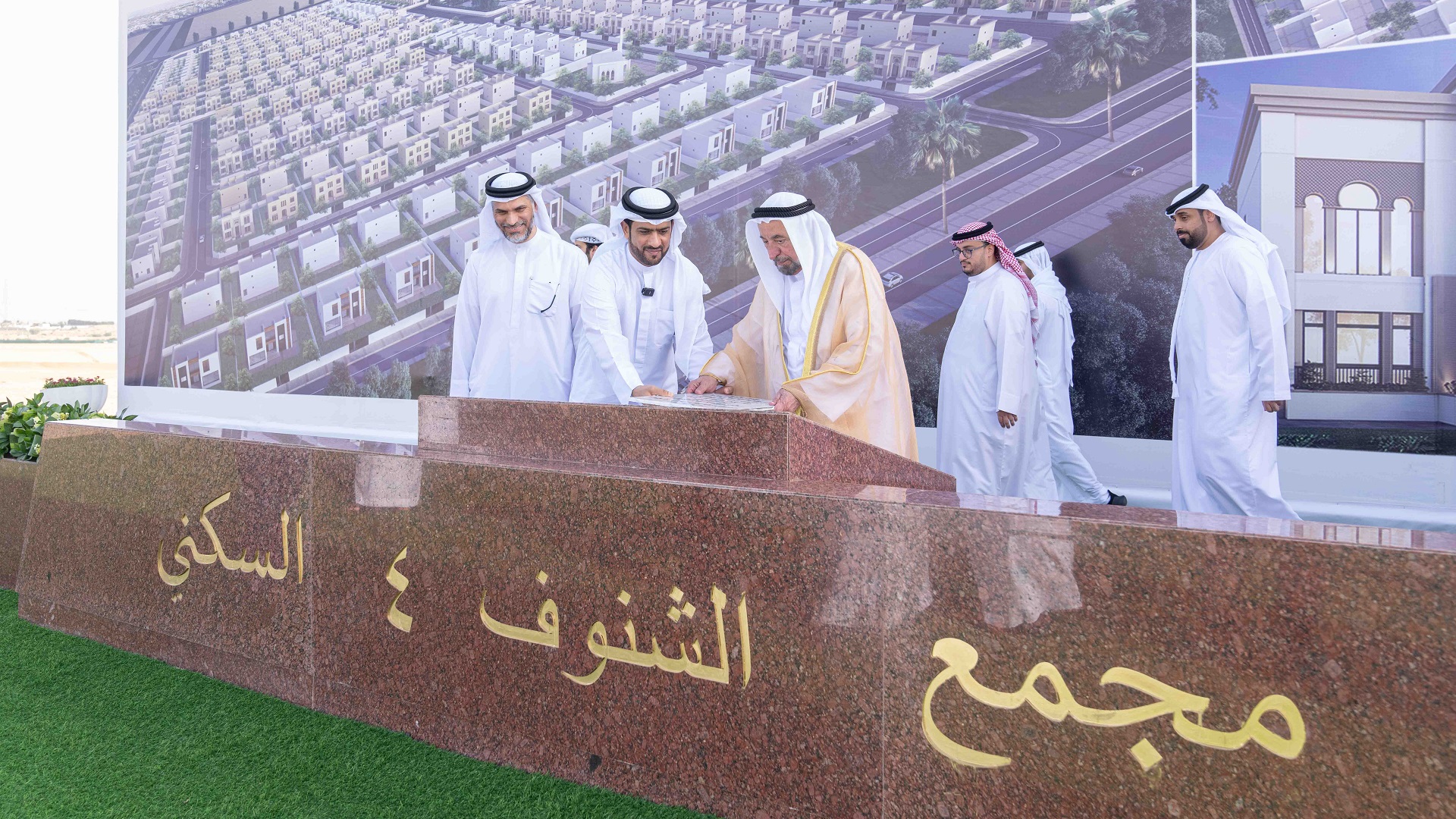 His Highness the Ruler of Sharjah reviewed the plans and distributions of Al Shanouf 4 Complex, which is located on a total area of 765 thousand square metres, and is expected to accommodate 3,759 people, and includes 549 housing units, including 28 housing units (ground floor only), and 521 housing units (ground floor + first floor). His Highness reviewed a map of Al Qutainah 3 complex project, which will house approximately 2,480 people and is located on a total area of 837 thousand square metres, and includes 429 housing units, 22 housing units (ground floor only) and 407 housing units (ground floor + first floor).