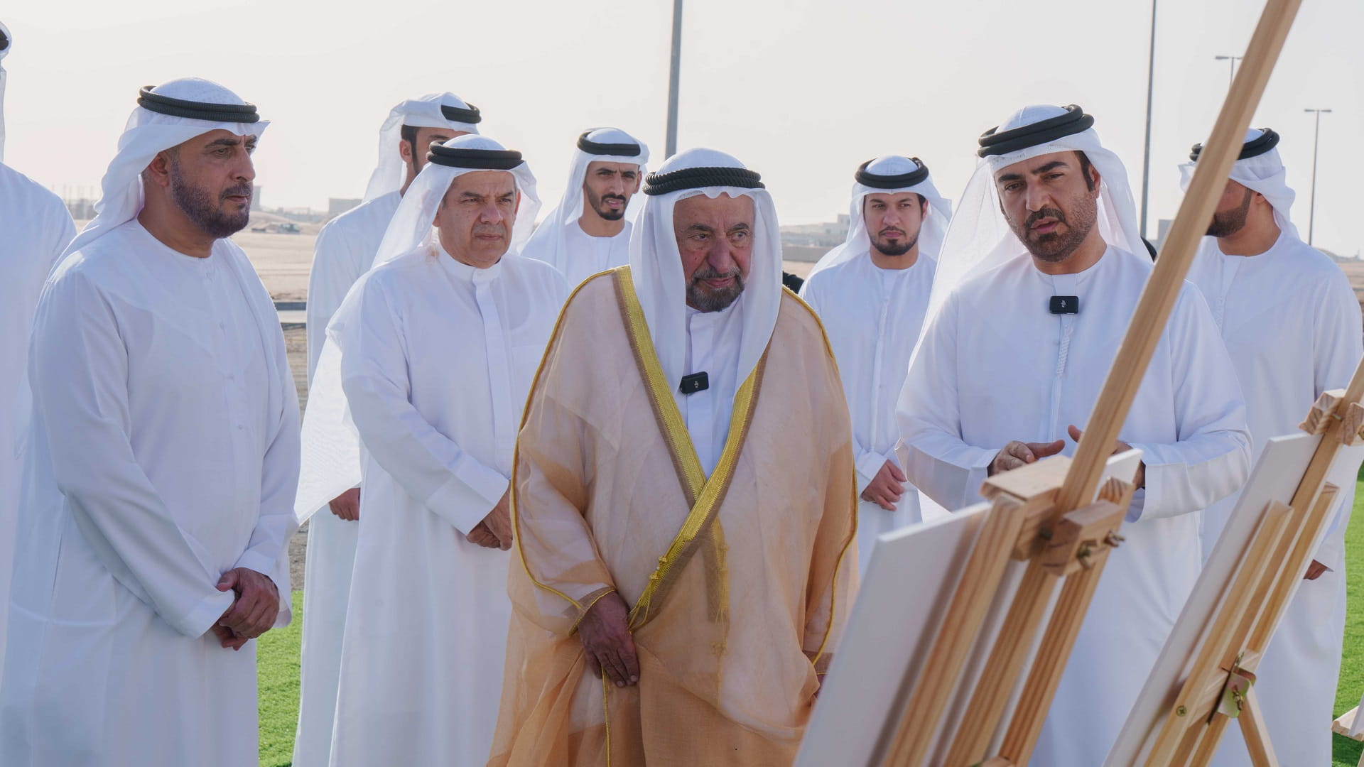 His Highness Sheikh Dr. Sultan bin Mohammed Al Qasimi scrutinised the designs of the projects for which he ceremoniously laid the foundation stone, acquainting himself with the particulars of their contents and facilities.