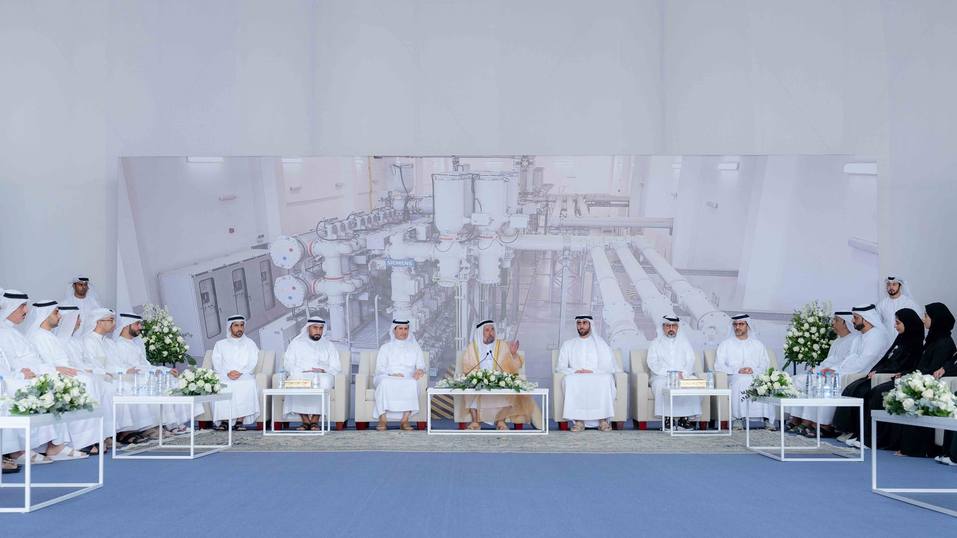 His Highness observed several models depicting the water, electricity, and gas distribution networks in the area, alongside a representation of the upcoming power station to be built in Mahdub. He attentively listened to a comprehensive explanation detailing the features and functionalities of these systems, gaining insights into their future implementation.