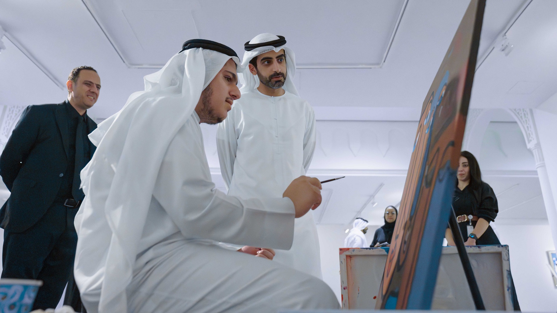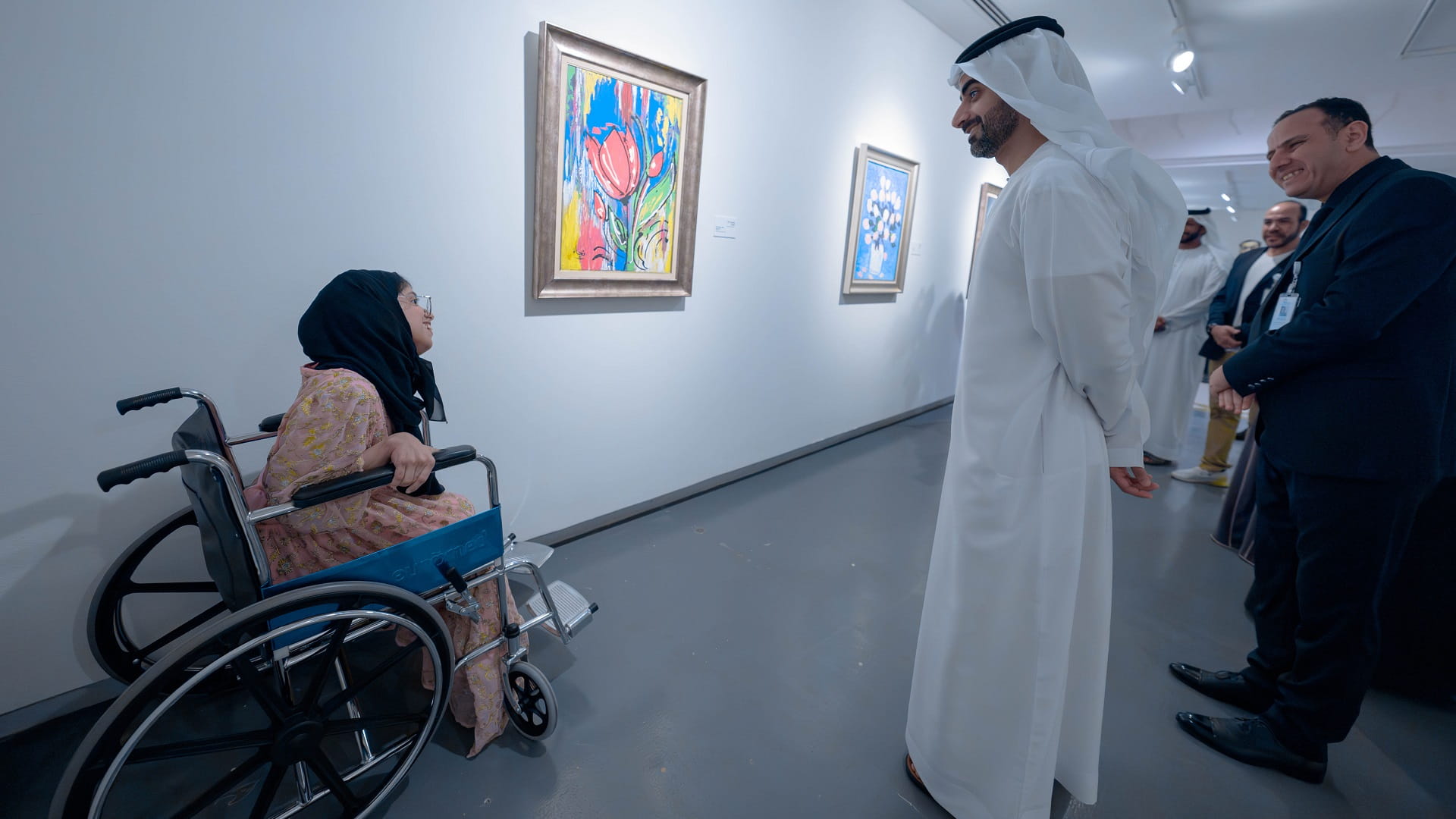 Sheikh Salem visited an art exhibition showcasing the creative talents of artists with disabilities. He listened to detailed explanations of the artworks, which reflect the artists' unique perspectives on disability and their ambitious artistic visions.