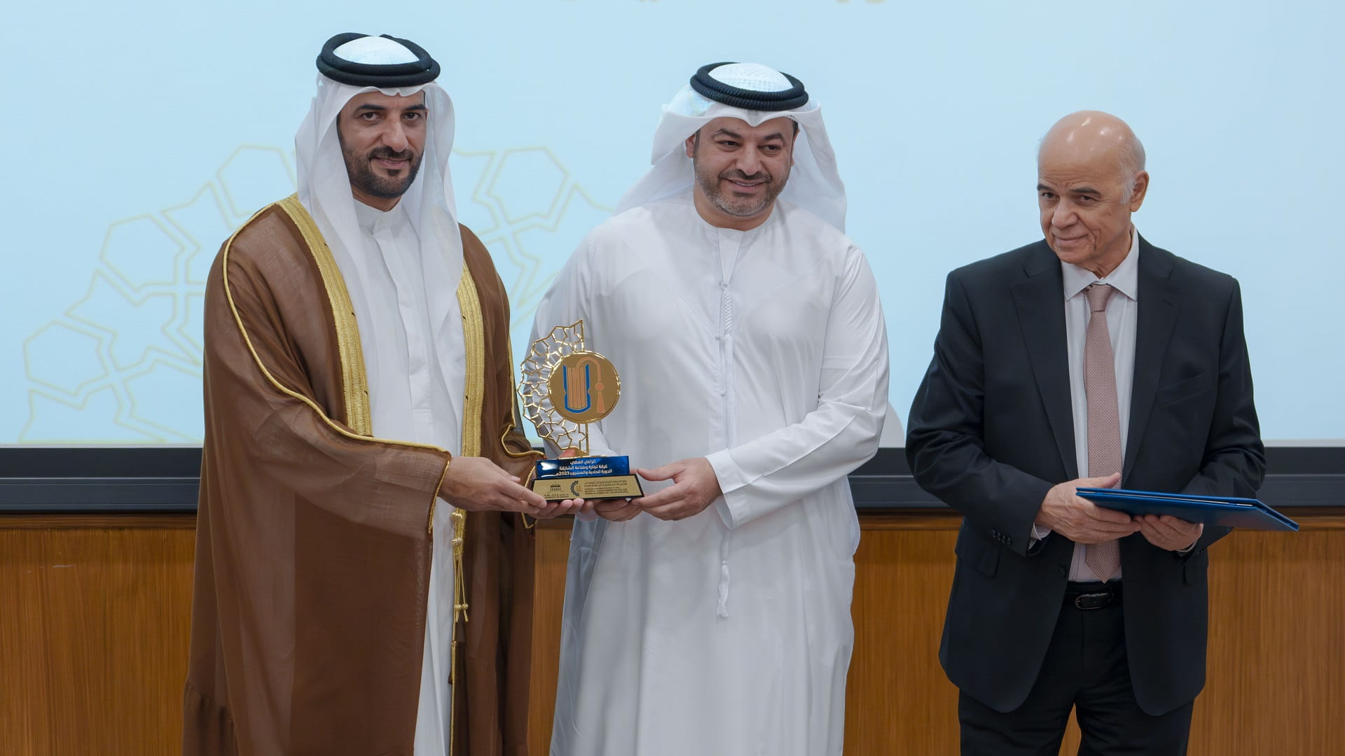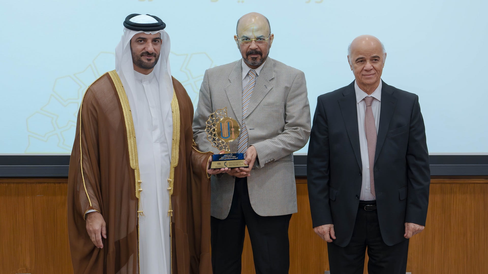 The President of the University of Sharjah honoured the sponsors of the award, including Sharjah Islamic Bank as the "Gold Sponsor" and the Sharjah Chamber of Commerce & Industry as the "Silver Sponsor." In addition, the scientific committee members were honoured for their contributions. Sheikh Sultan bin Ahmed graciously participated in a group photograph alongside the members of the award's Board of Trustees.