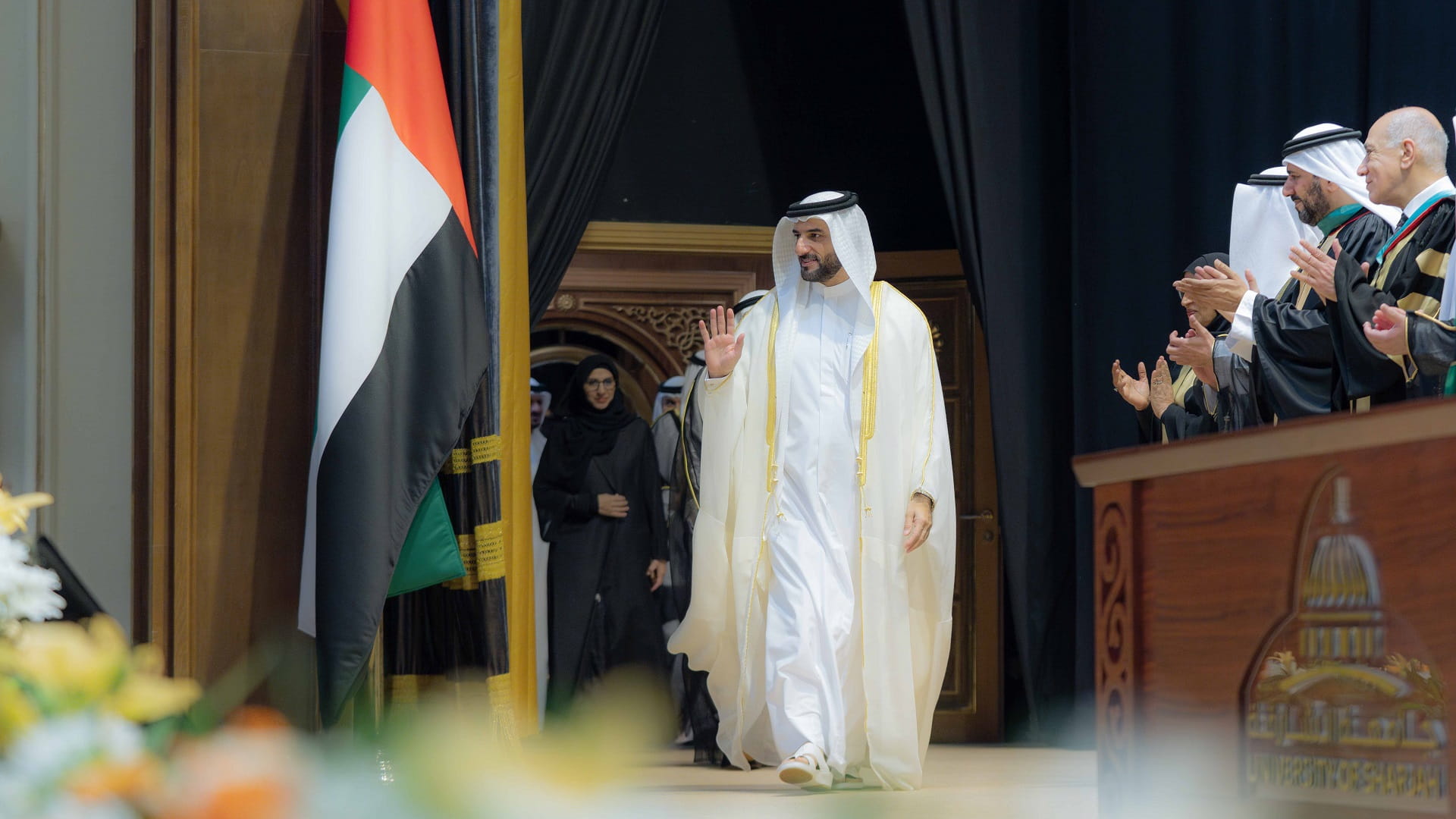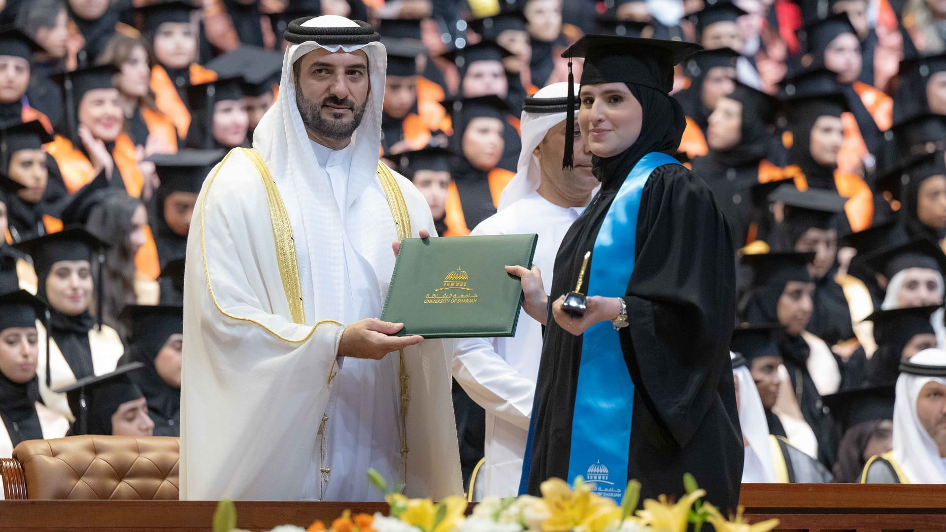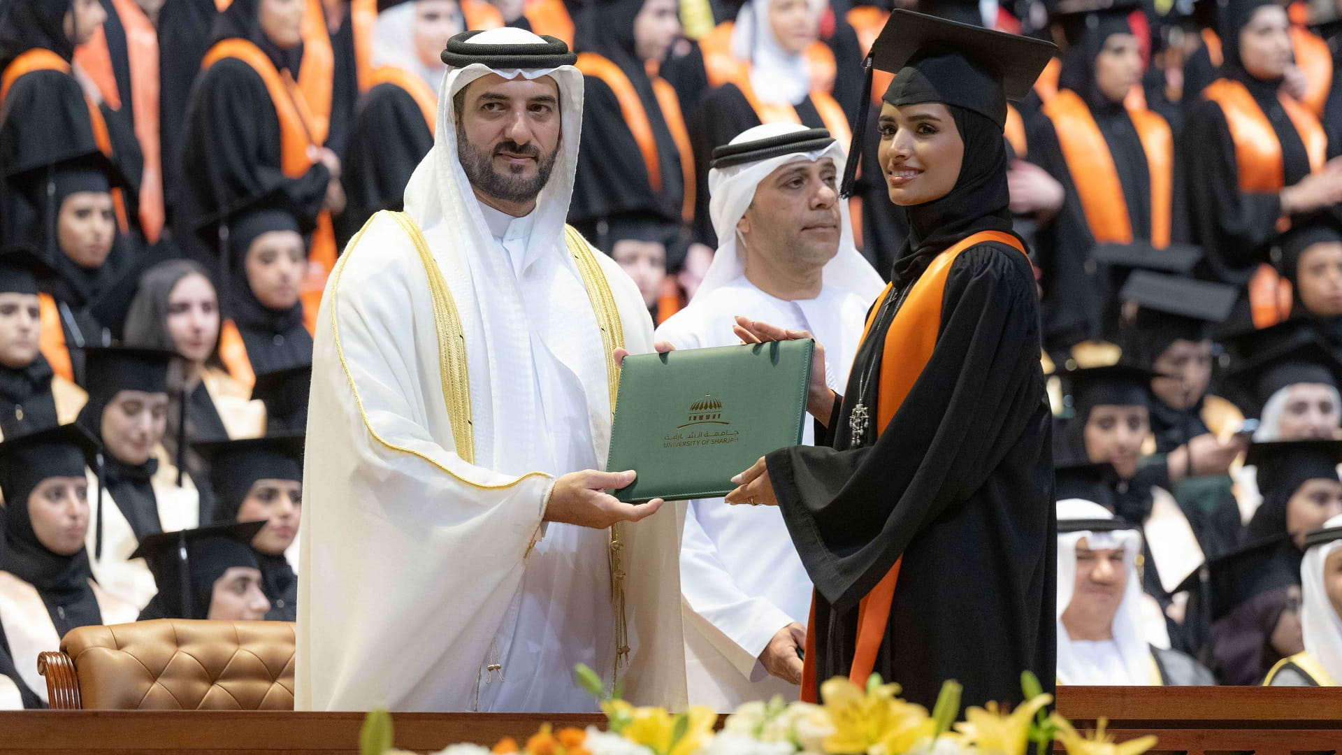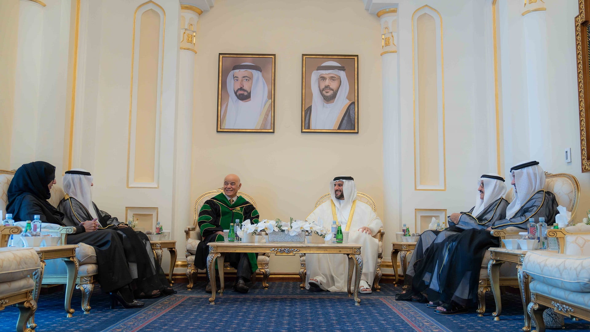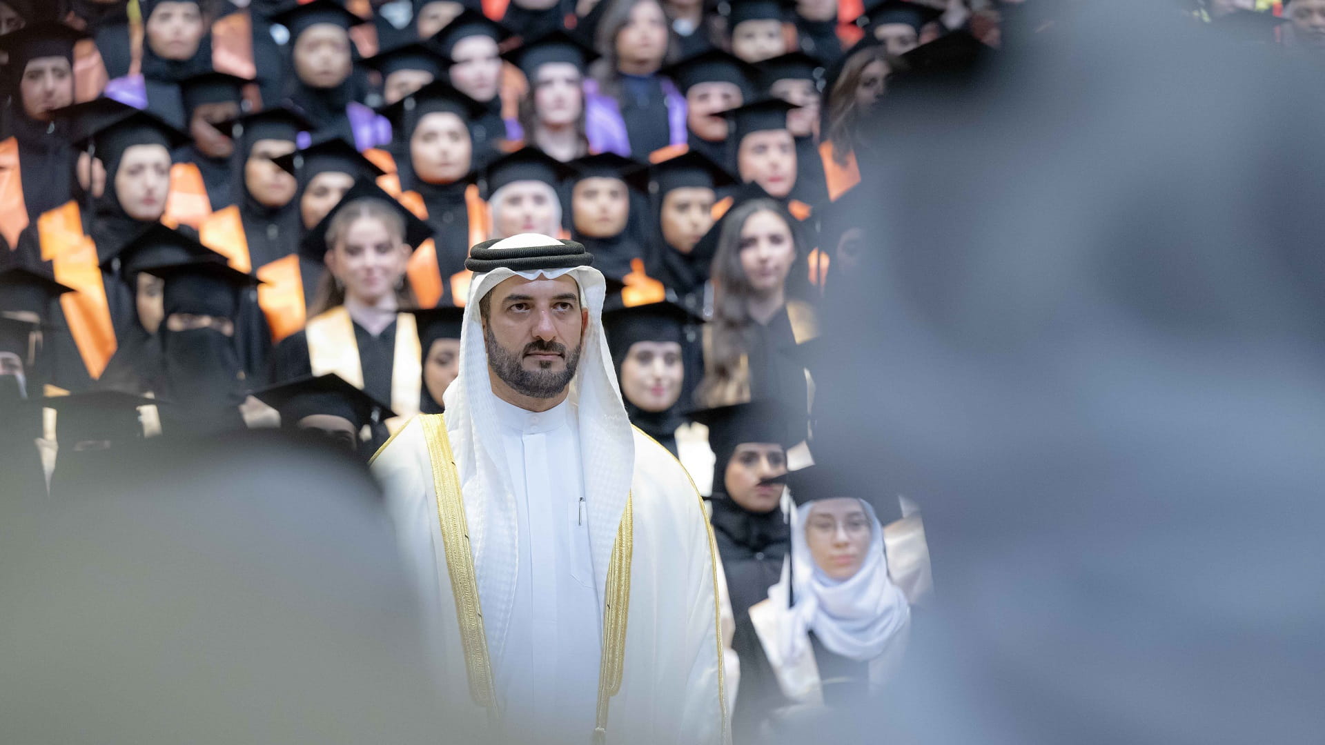Sultan bin Ahmed graciously presented certificates to women who had completed bachelor's degrees in various programs at the colleges of Business Administration, Communication, Arts, Humanities and Social Sciences, Computing and Informatics, Public Policies, Sharia and Islamic Studies, Sciences, Fine Arts and Design, Law, and Engineering. His Highness extended his congratulations to the female graduates and expressed his best wishes for their future endeavours.