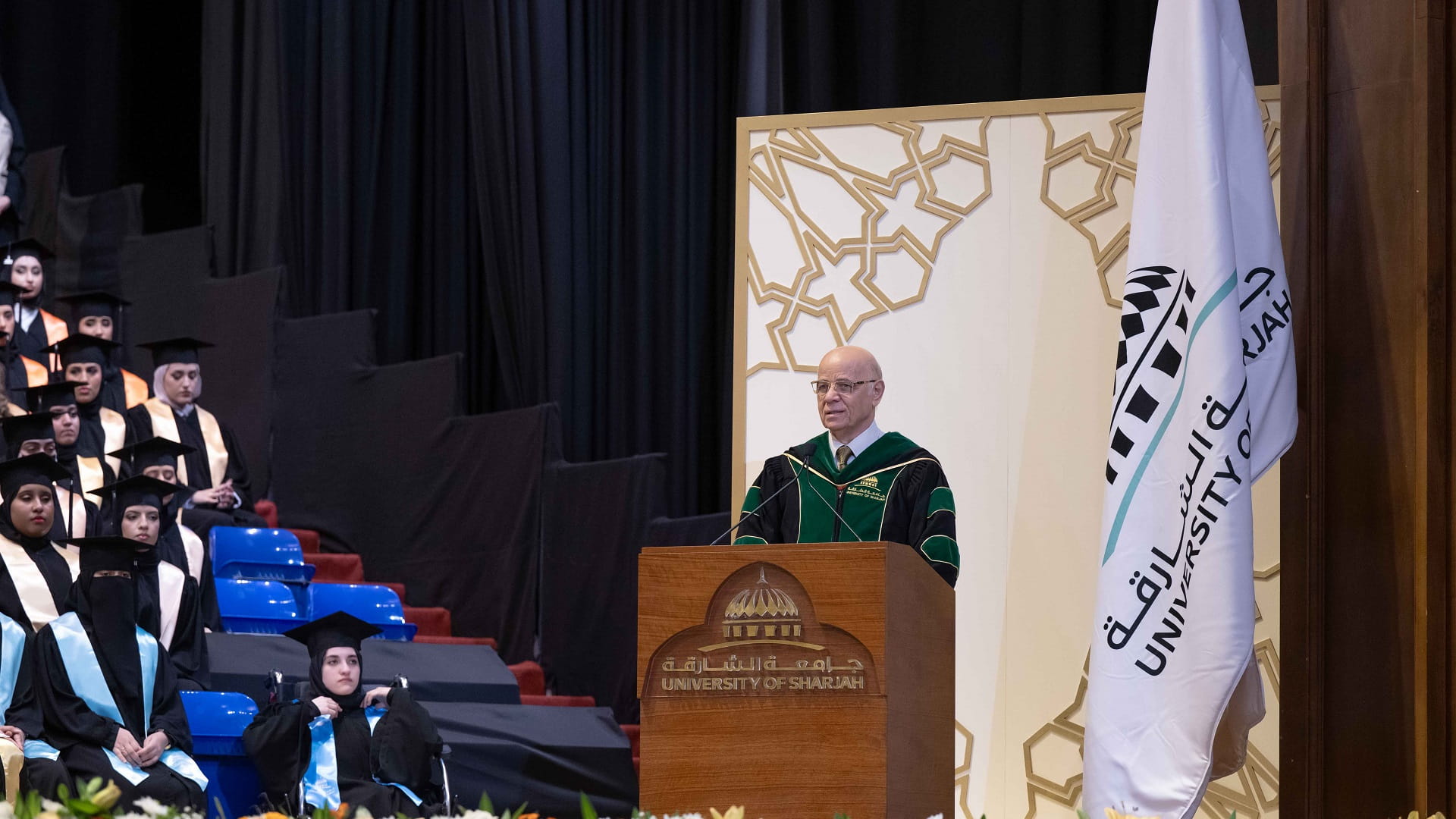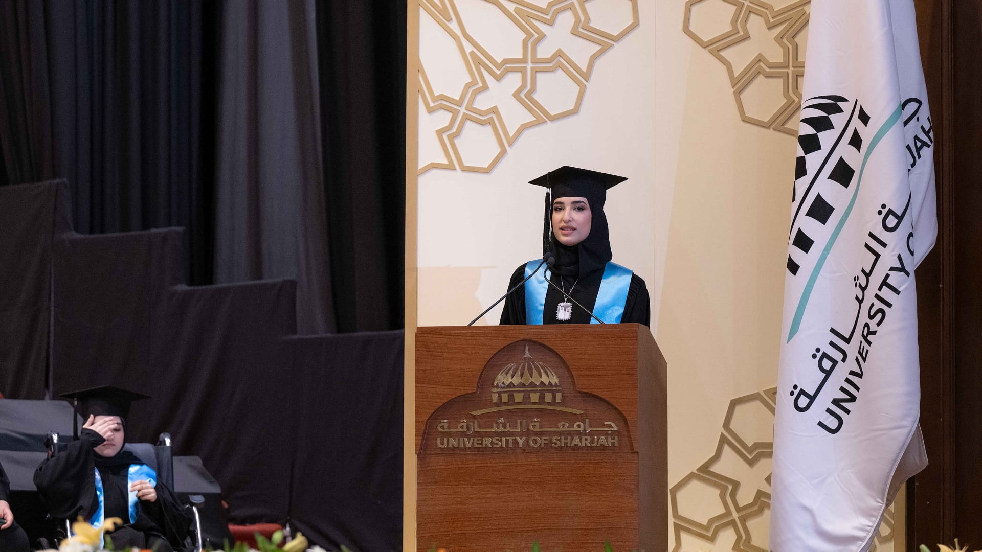 She concluded her speech by saying: “Thank you to everyone who contributed to making this happy day a reality. Thank you to the wise leadership that provided us with a supportive environment to achieve our ambitions. Thank you to our leaders and inspirations. Thank you to our dear homeland, which we are proud of among the nations. Thank you to every heart that beats to serve this land, the land of the United Arab Emirates, the land of ‘Zayed Al Khair’, and we, the graduates of the University of Sharjah, pledge to you to be its best ambassadors, and to serve this land with all sincerity, love and loyalty.”