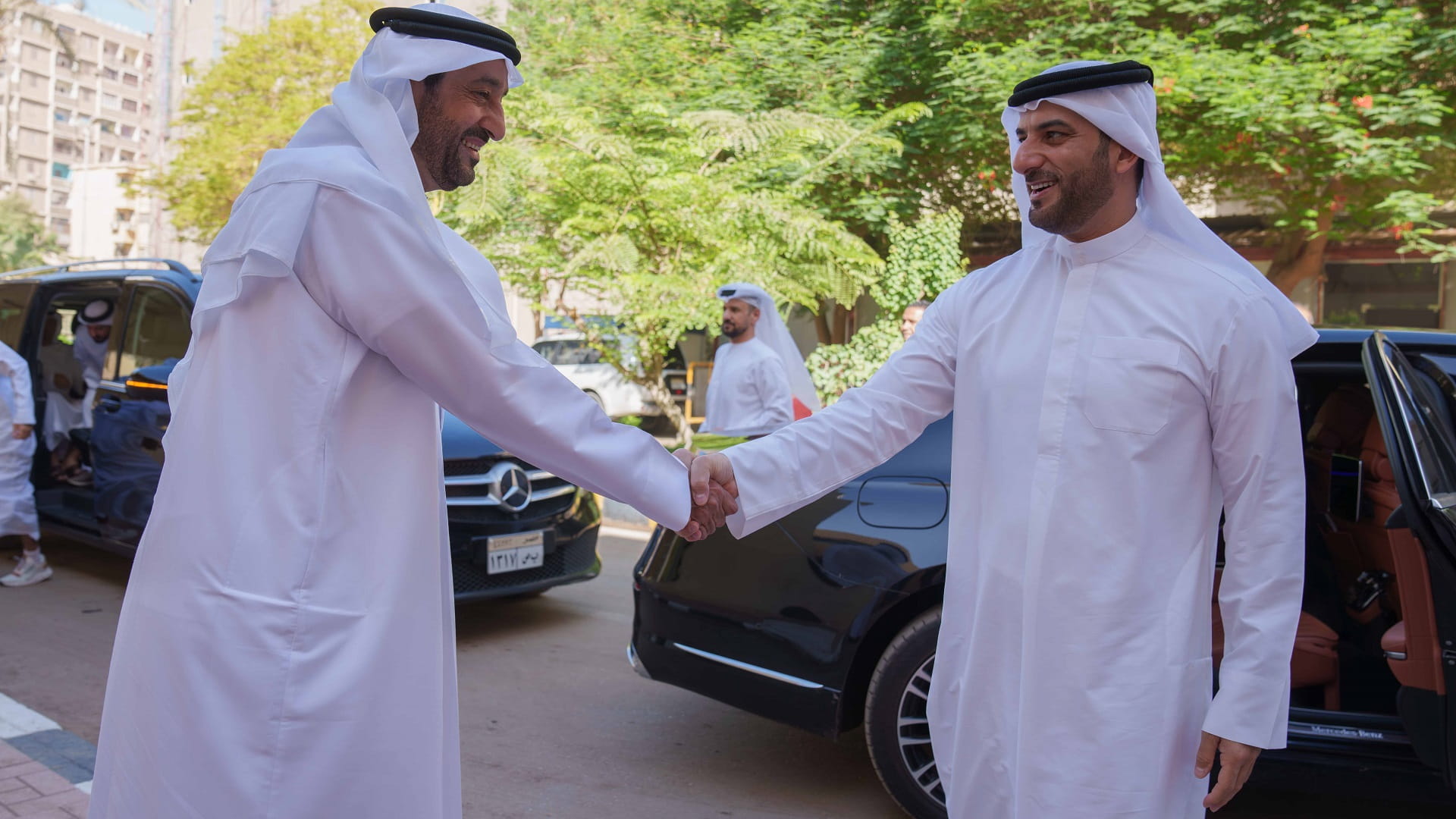 Sheikh Sultan bin Ahmed was accompanied by: Sheikh Saqr bin Mohammed Al Qasimi, Chairman of the Sharjah Charity International; Mohammed Hassan Khalaf, Director General of the Sharjah Broadcasting Authority; Tariq Saeed Allay, Director General of the Sharjah Government Media Bureau; Salem Ali Al Ghaithi, Director of the Sharjah Broadcasting Authority; Abdullah Sultan bin Khadem, Executive Director of the Sharjah Charity International; And a number of directors of Sharjah Broadcasting Authority channels and officials in the health sector in Egypt.