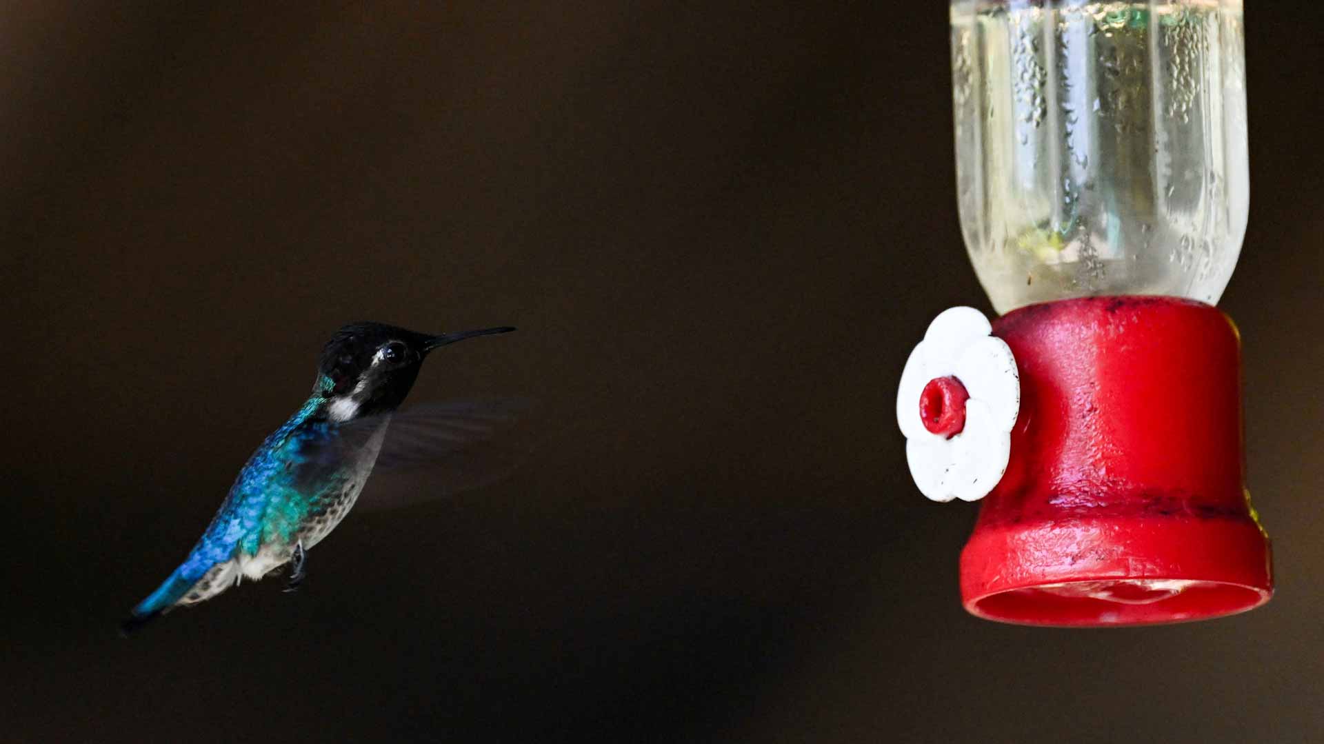 The two have become experts in the behavior of the bird, pointing out the iridescent red head of a male bee hummingbird, who looks like he is wearing a glittery mask -- but only during the mating season.