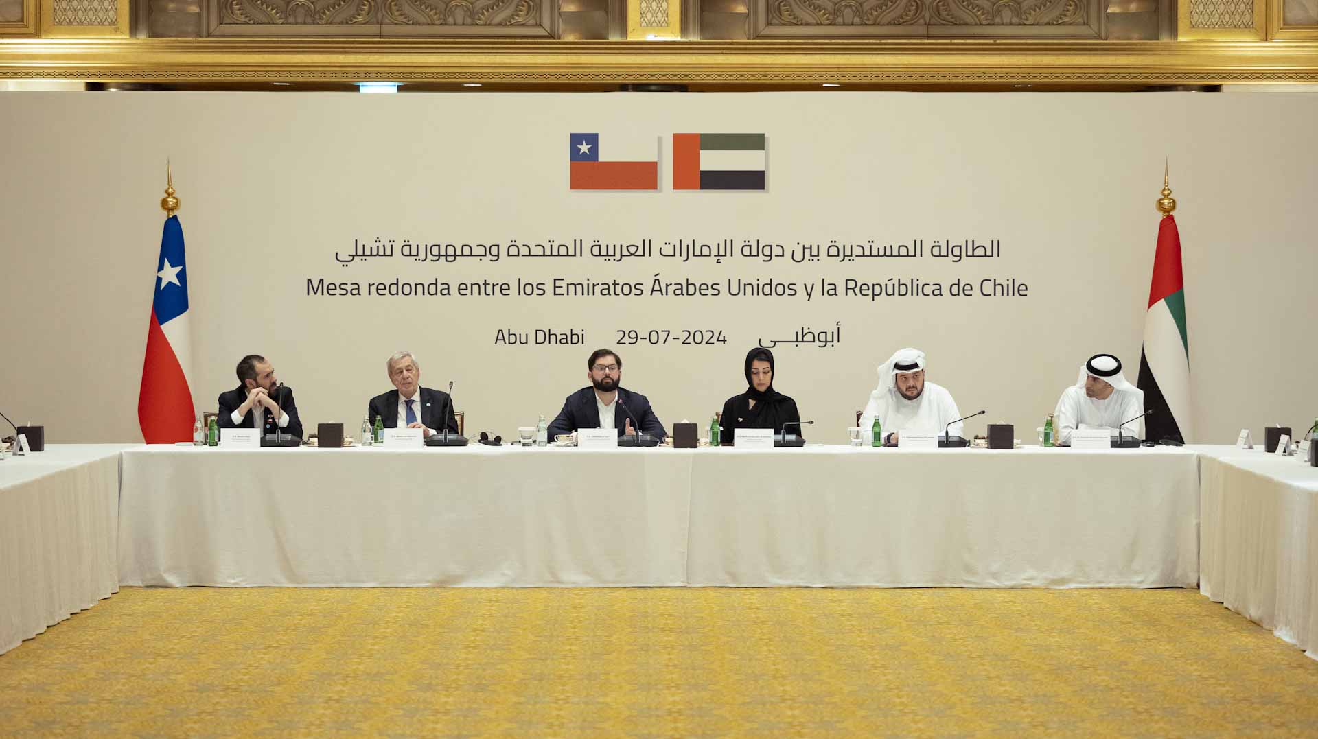 Upon his arrival at the Presidential Airport in Abu Dhabi, the Chilean President was received by Reem bint Ebrahim Al Hashimy, Minister of State for International Cooperation and Head of the Honorary Mission accompanying the President, Mohammed Saeed Al Neyadi, UAE Ambassador to Chile, and several officials.