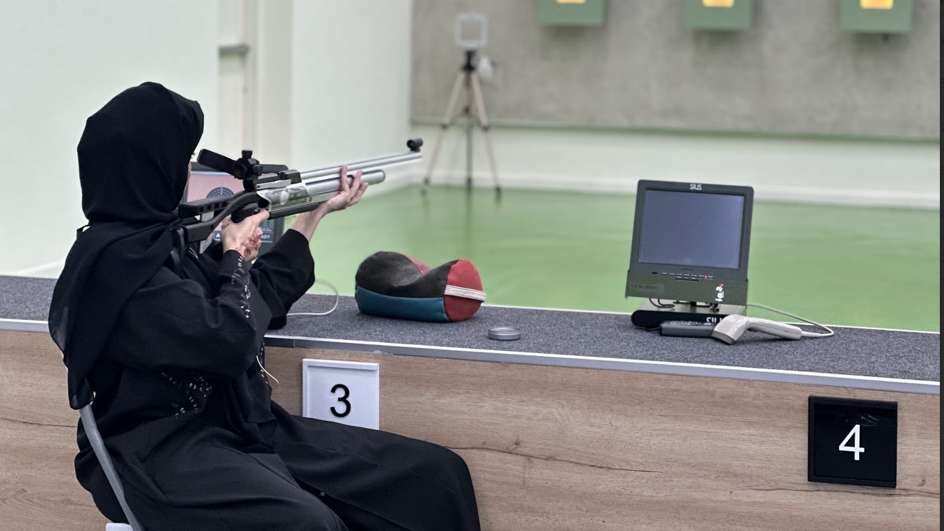 Suhaila explained that the participants are divided by age categories, and the shooters compete to hit the targets with the highest accuracy possible to win prizes, including a trophy and a gold medal for first place, a silver medal for second place, and a bronze medal for third place.