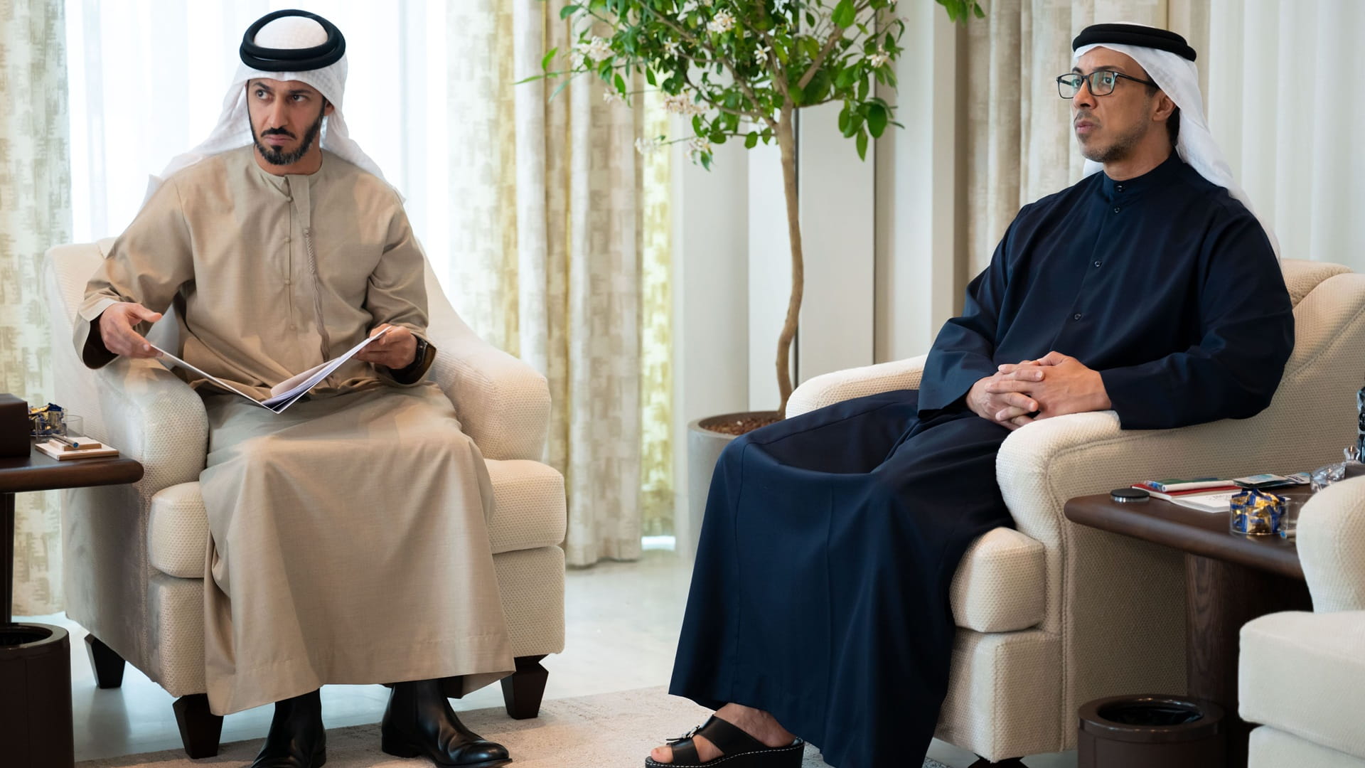 Sheikh Mansour bin Zayed inquired about the health of Sheikh Mohammed bin Butti and wished him continued good health and a long life.