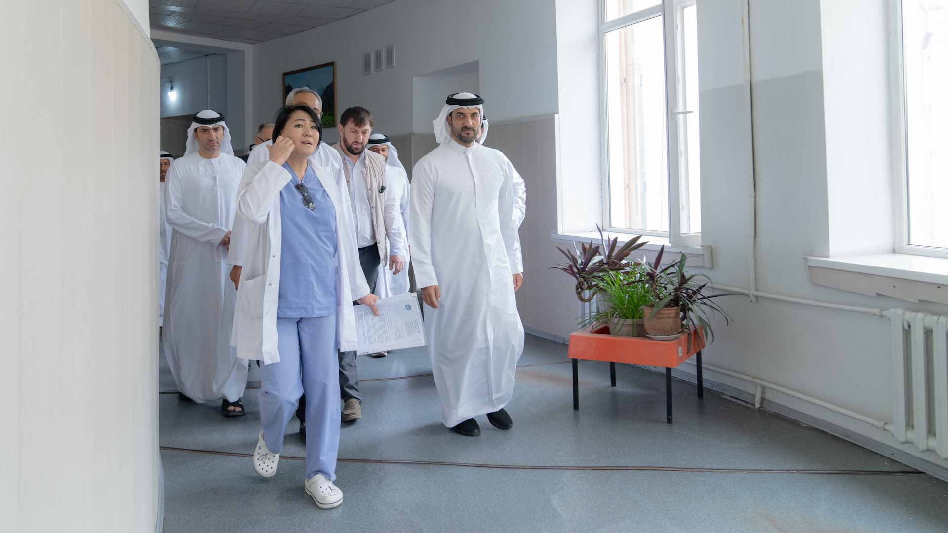 The Deputy Ruler of Sharjah also met with a number of children benefiting from the medical support donated by the Sharjah Broadcasting Authority, reassuring himself about their health and the progress of their treatment plans. The Deputy Ruler of Sharjah wished them continued health and well-being, praising the significant cooperation from Dr. Ahmed Al Kamali and the local medical team at the National Hospital in Kyrgyzstan for performing surgeries on the patients.