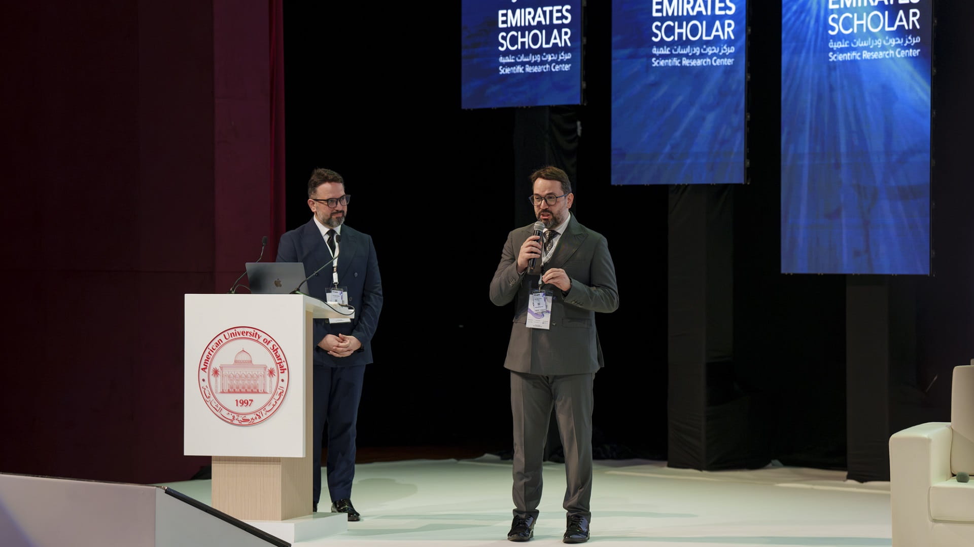 Dr. Firas Habbal, President of Emirates Scholar Research Centre, and Dr. Fawaz Habbal, Secretary-General of the centre, alongside Dr. Mohamed Safi Al Mosteghanemi, Secretary General of Arabic Language Academy, highlighted several features of the GPT Dictionary. One notable feature is "Tahawar Ma’ie," which enables non-Arabic speakers to listen to answers to their linguistic queries while selecting a preferred voice. Dr. Firas Habbal explained, "We recognised that non-Arabic speakers often struggle with pronunciation and diacritics, so we introduced the (Tahawar Ma’ie) feature to make the dictionary accessible to everyone, not just experts."