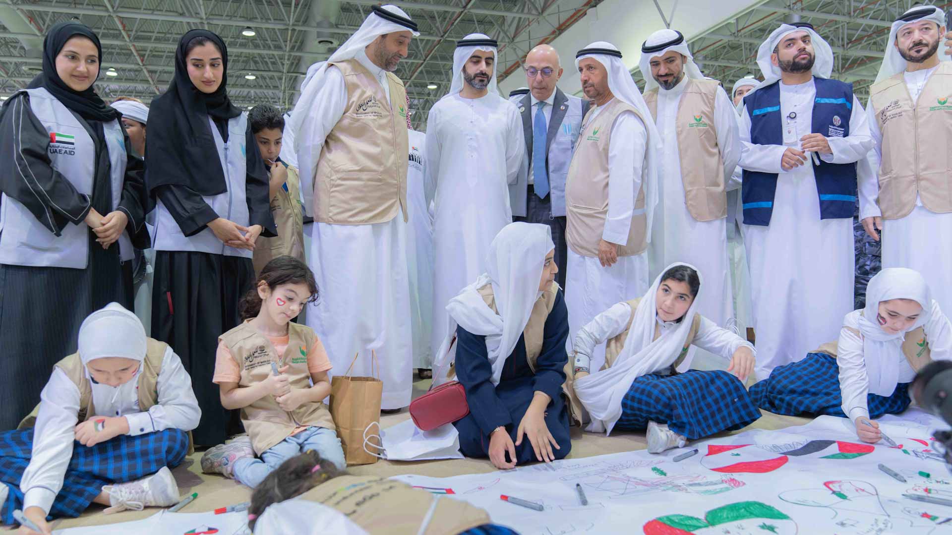 The Chairman of the Ruler’s Office also visited the Children’s Corner, where the children demonstrated their support for the campaign by creating artwork in the colours of the Lebanese flag, conveying messages of solidarity to the Lebanese people.