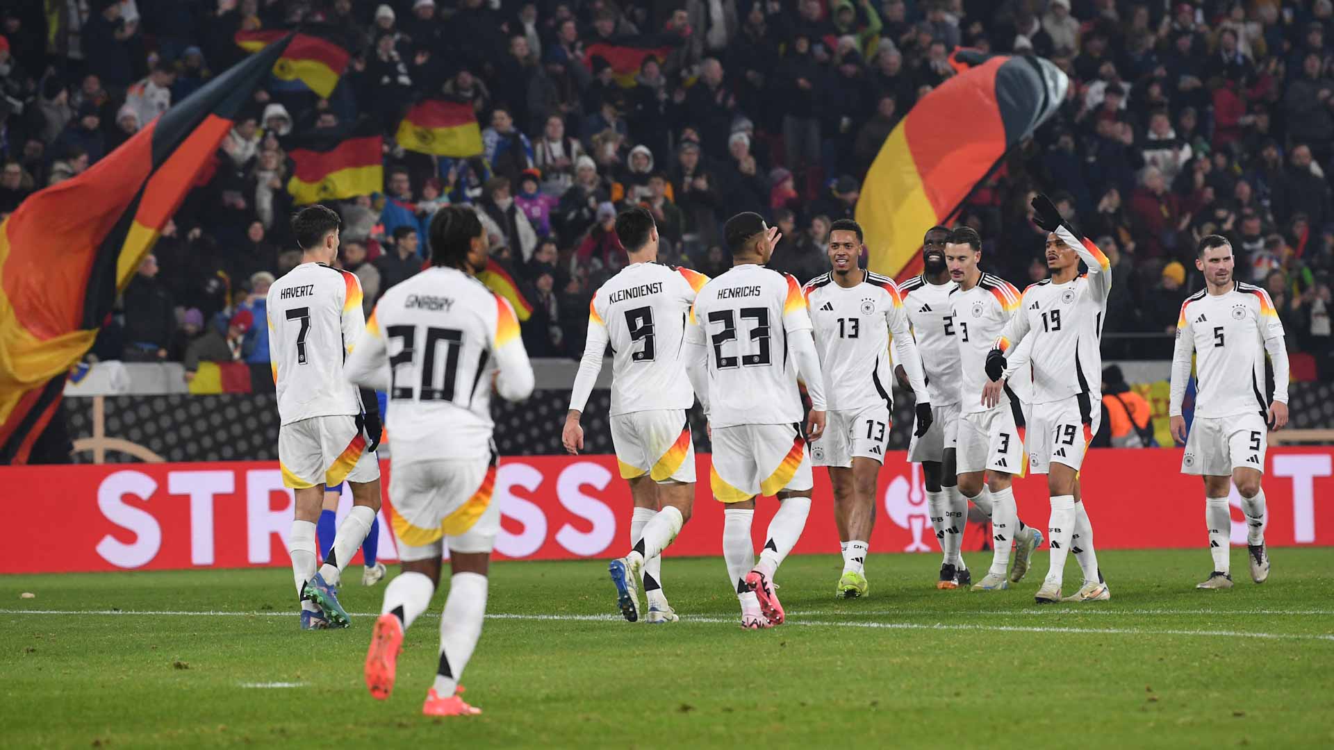 Tim Kleindienst scored his first goal for Germany in the 23rd minute and Kai Havertz made the game safe eight minutes before the break, slotting home after a slick one-two with Florian Wirtz.