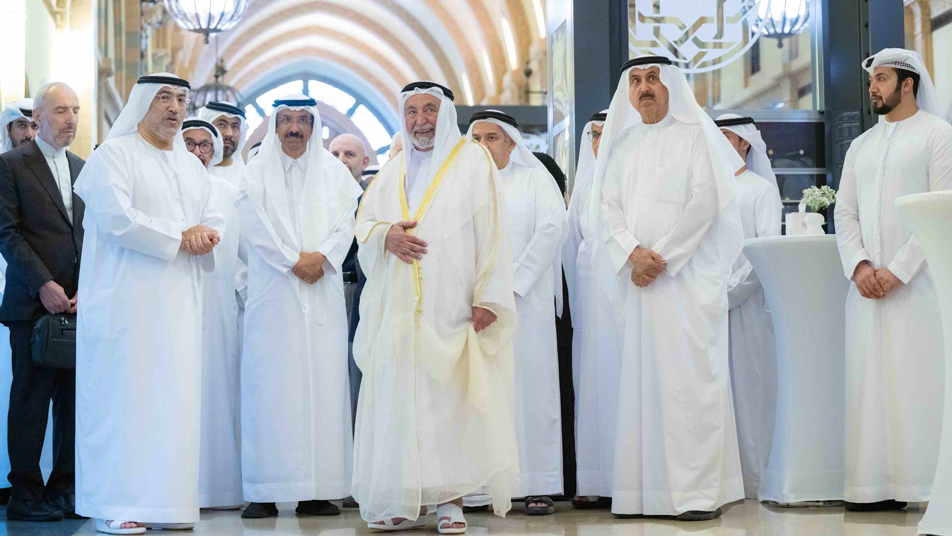 Upon his arrival, His Highness was received by His Excellency Saqr Ghobash, President of the Federal National Council, Sheikh Salem bin Abdulrahman Al Qasimi, Chairman of the Ruler's Office, Sheikha Nawar bint Ahmed Al Qasimi, Director of the Sharjah Art Foundation, His Excellency Abdul Rahman bin Mohammed Al Owais, Minister of Health and Prevention, His Excellency Mohammed Al Murr, Chairman of the Board of Mohammed bin Rashid Al Maktoum Library along with several heads and general directors of local government departments in Sharjah, as well as intellectuals and enthusiasts.