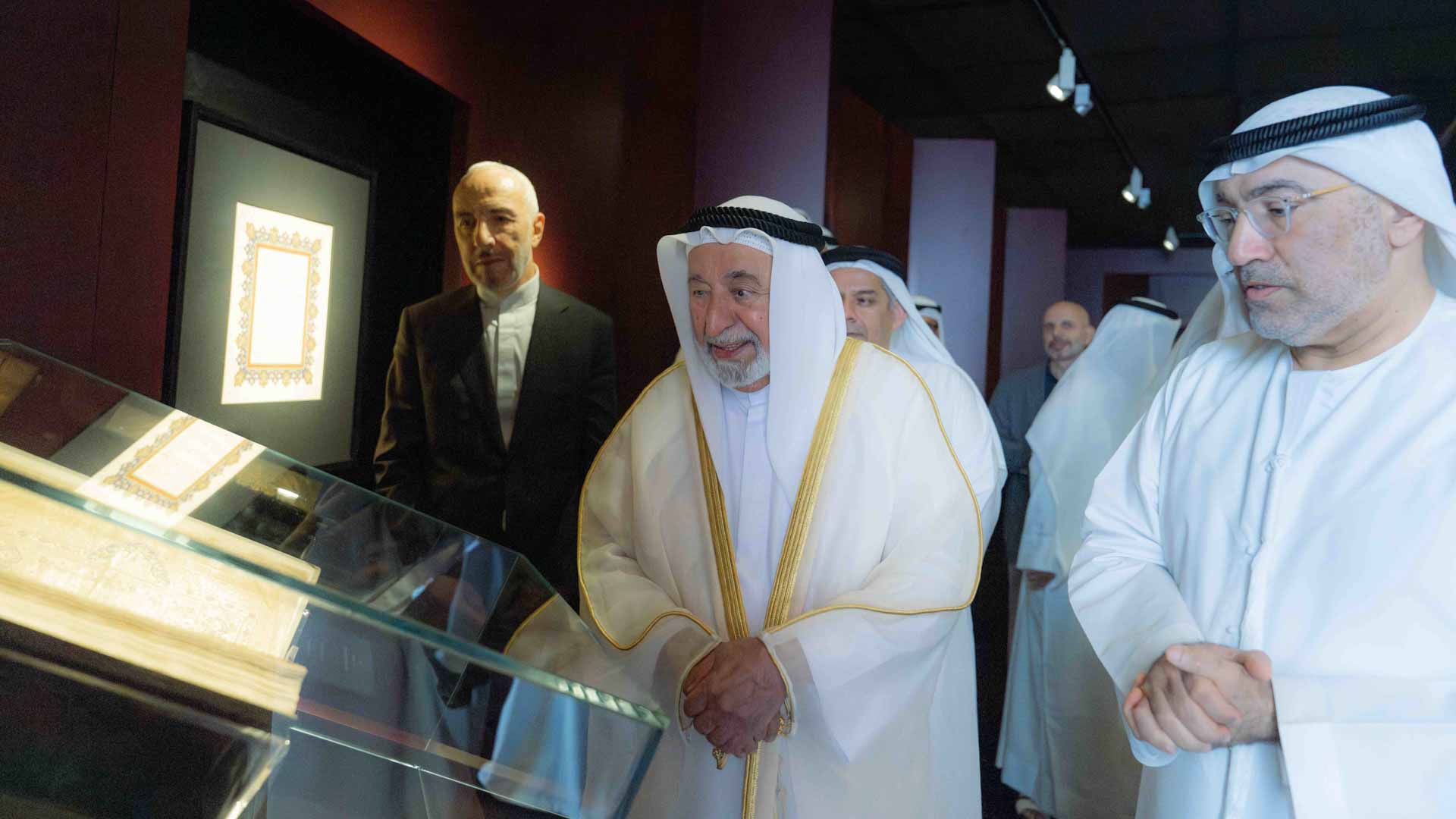The exhibition offers a cultural and historical journey spanning 1,300 years of Quranic manuscript history and Arabic calligraphy through showcasing exhibits that are part of the private collection of His Excellency Abdul Rahman bin Mohammed Al Owais, Minister of Health and Prevention.