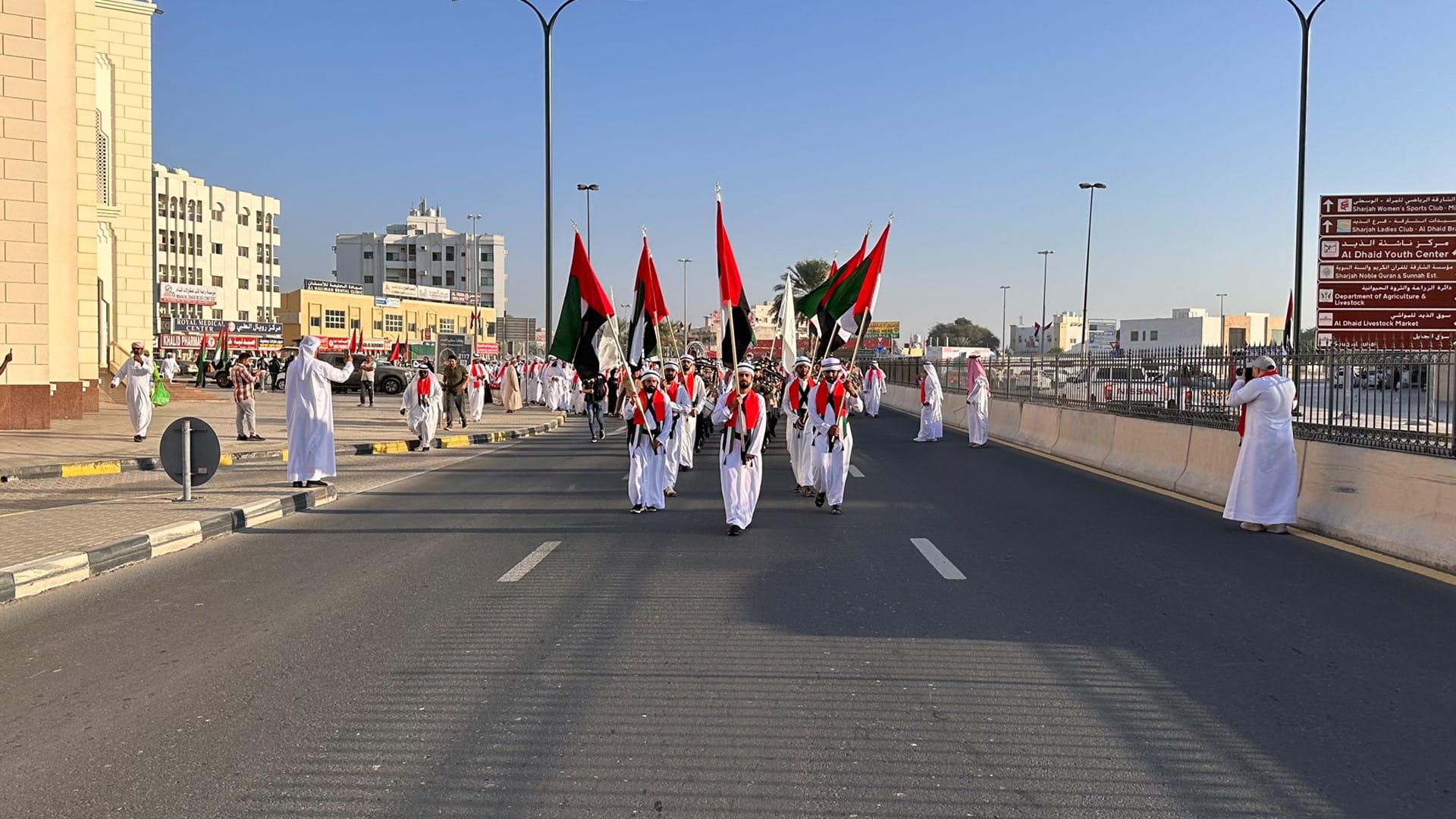 Sharjah24: Al Dhaid celebrated the 53rd Eid Al Etihad amidst a patriotic atmosphere of loyalty and love. The festivities began with a parade featuring various community groups along with local government and private entities, starting at Al Dhaid Mosque and concluding at Al Dhaid Fort, where traditional songs and cultural activities took place. Sharjah24 news website provided an in-depth look at the event by interviewing Rashid Mhair Al Ketbi, Chairman of the Organising Committee for Eid Al Etihad Celebrations in Al Dhaid, who spared no effort in shedding light on the event .