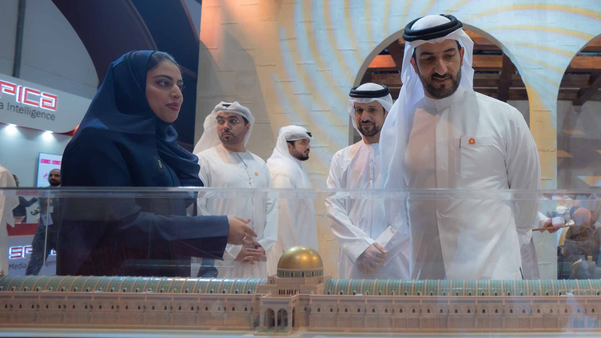 His Highness toured the Sharjah pavilion at the exhibition, which showcases the efforts of the Sharjah Media Council. This collective comprises the Sharjah Government Media Bureau, the Sharjah Broadcasting Authority, and Sharjah Media City (Shams).