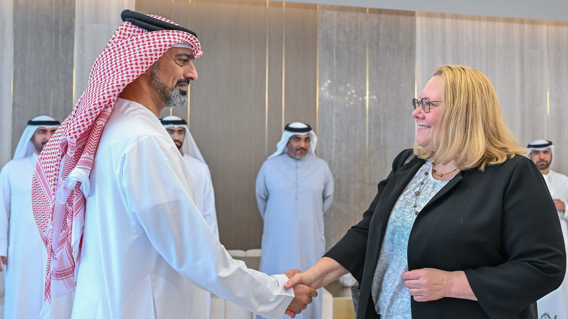 Several sheikhs, officials, and the accompanying delegation of the Ambassador of Finland attended the meeting.