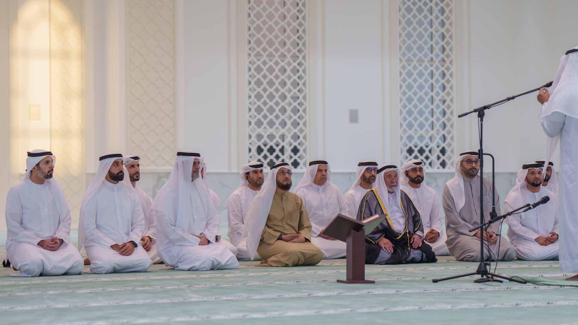His Highness and attendees listened to a sermon by Sheikh Dr Salem Al-Doubi, head of the Preaching and Fatwa Section at the Department of Islamic Affairs in Sharjah, highlighting the spiritual and societal value of mosques and the great rewards for those who contribute to building and maintaining them. Dr Al-Doubi praised His Highness’s efforts in supporting worship spaces and fostering spiritual tranquillity.