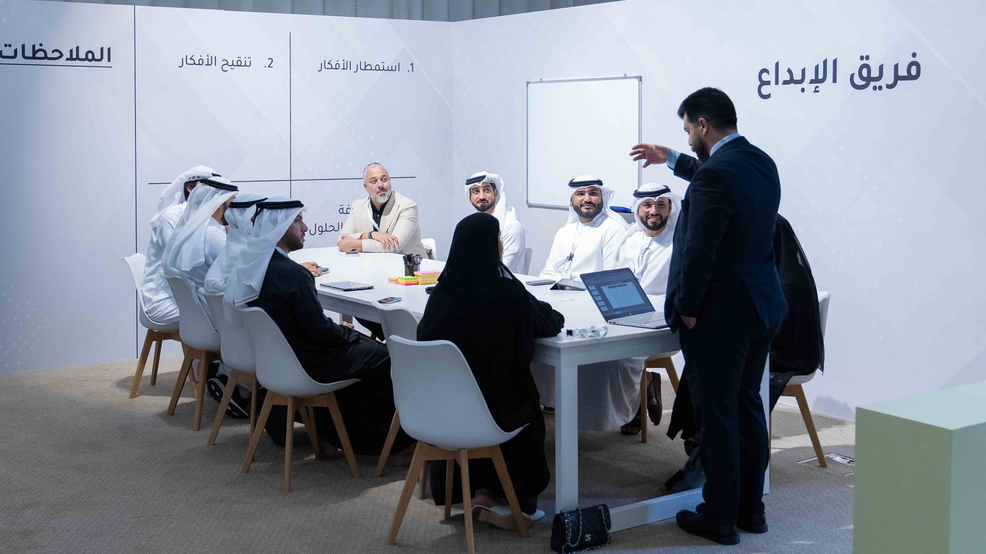 During the ceremony, His Highness also followed the accompanying workshops and brainstorming activity of the working teams that were formed with the aim of developing solutions and proposals for the four challenges for the future of media, which His Highness raised during his speech at the ceremony.