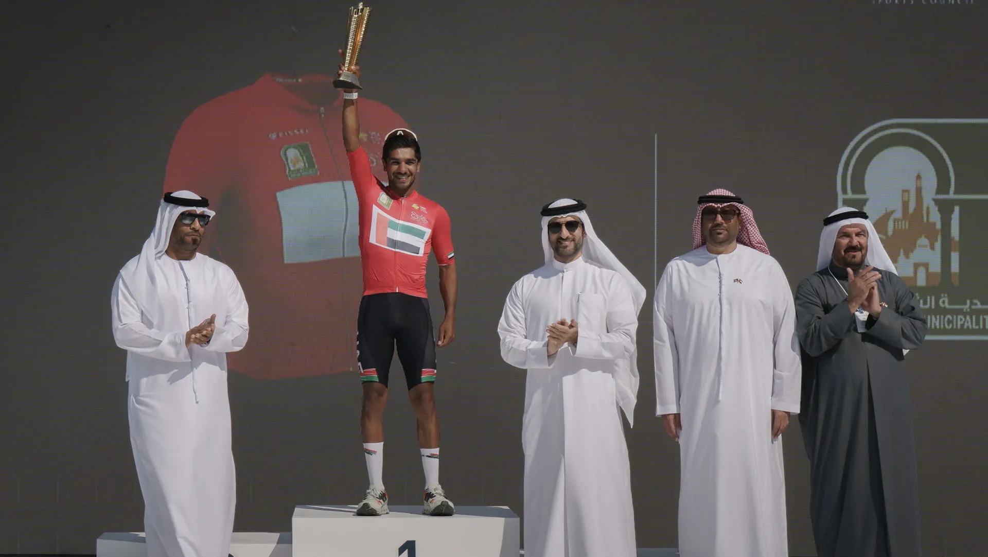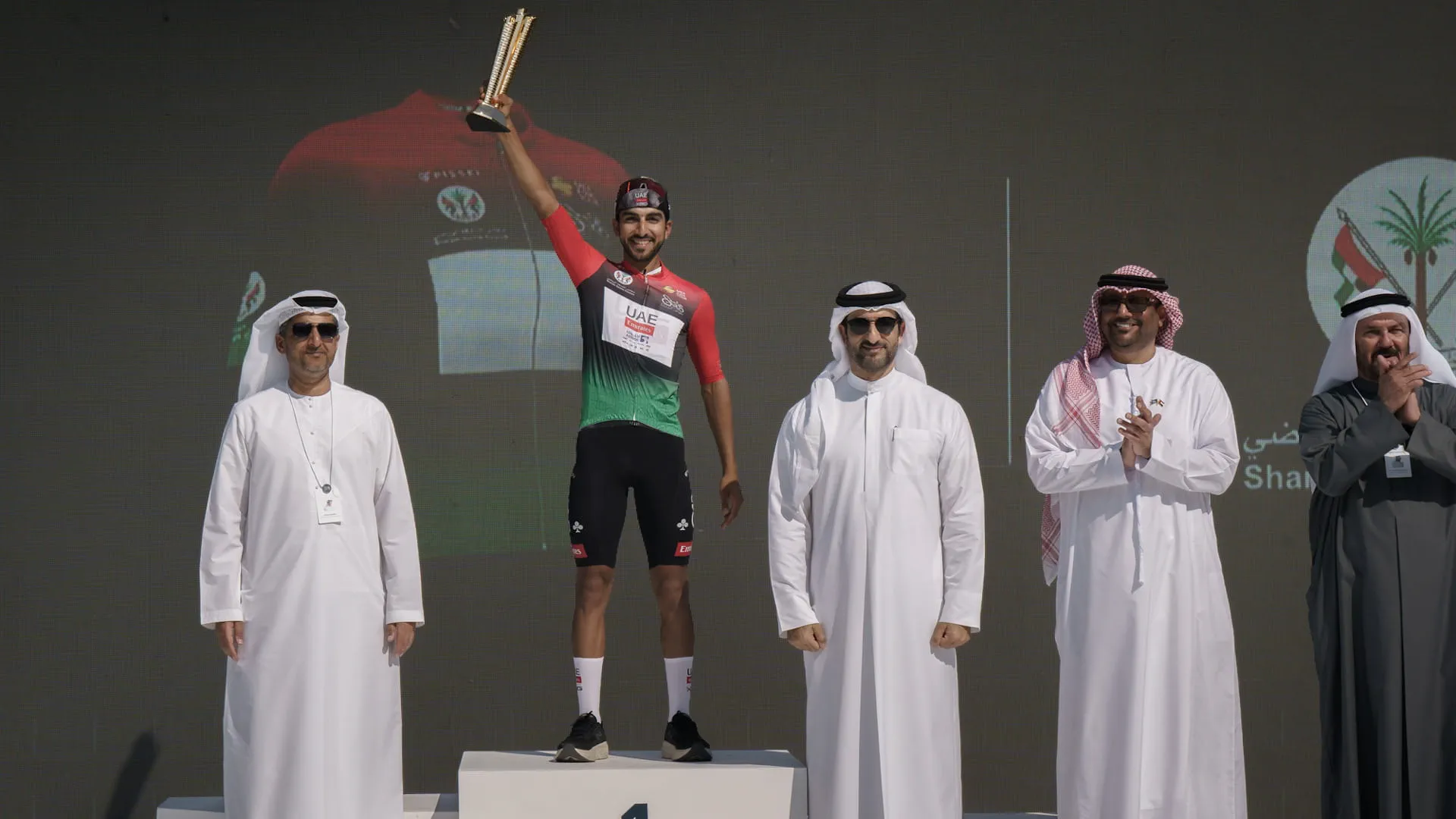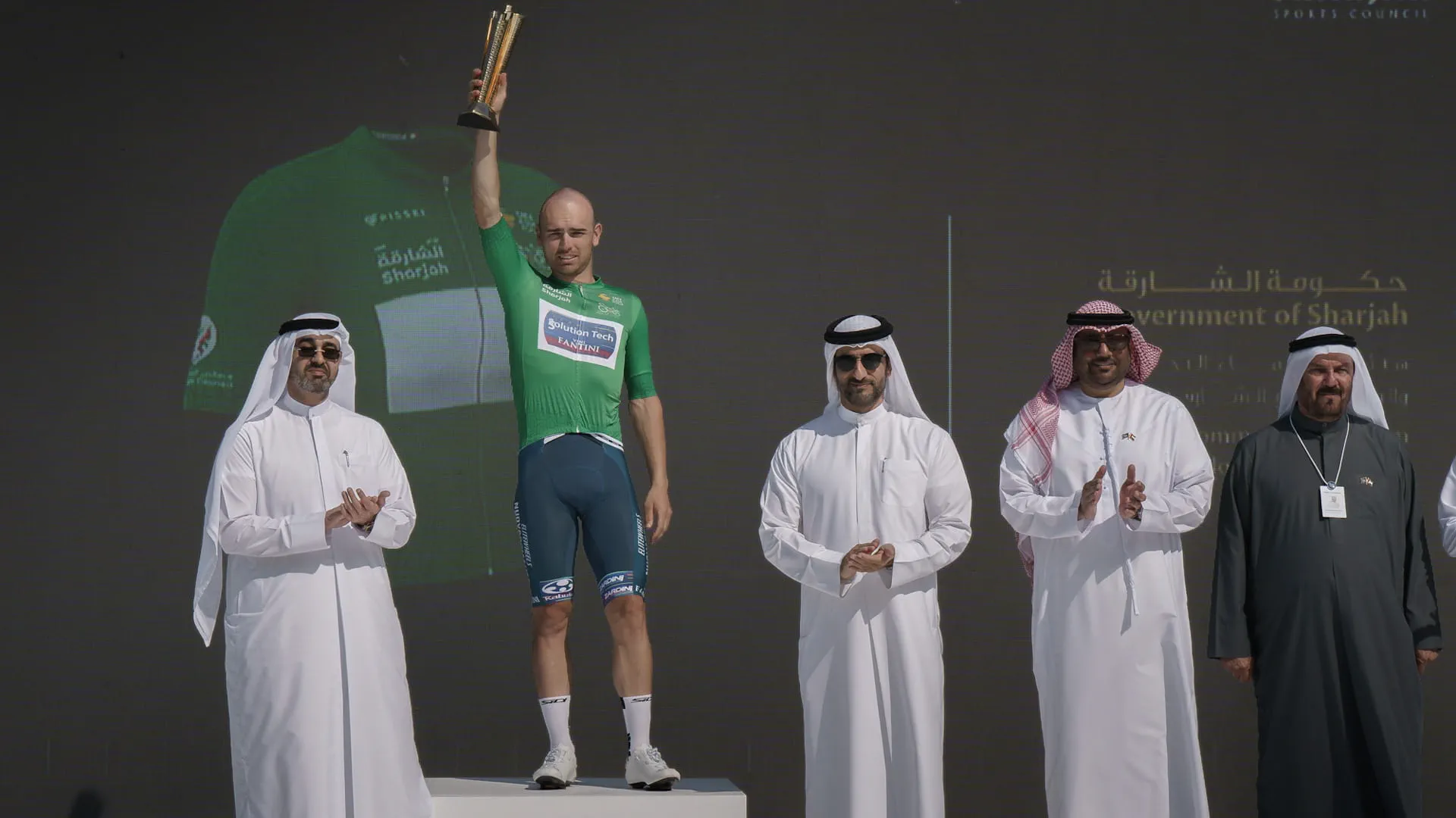 Josh Kenneth from the Chinese Li Niang Star team won the yellow jersey for the best time in completing the stage distance, sponsored by the Sharjah Police General Command. Dusan Rajovic from the Italian Soltion Tech team claimed the green jersey for the best speed points average, sponsored by the Sharjah Commerce and Tourism Development Authority. Meanwhile, Rashid Al Balushi from the UAE national team secured the red jersey for the best hill climb average, sponsored by the Sharjah Municipality.