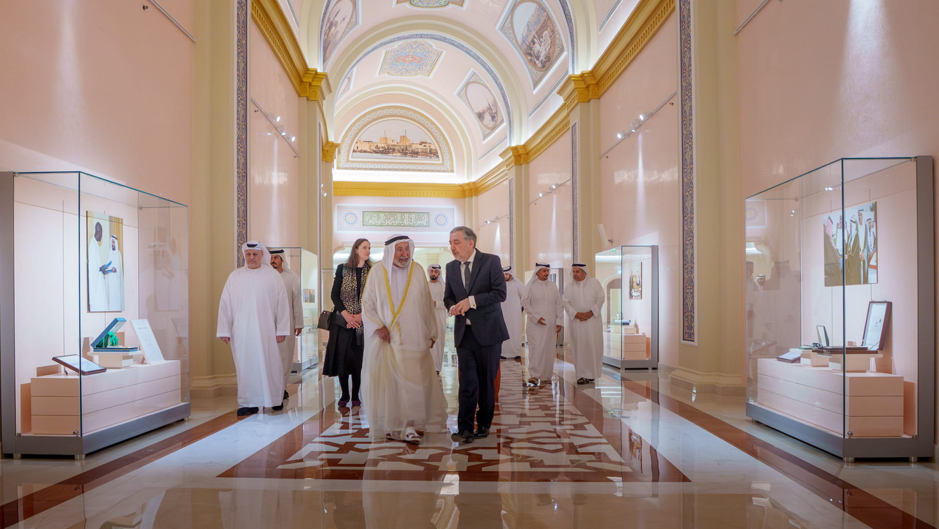 His Highness Sheikh Dr. Sultan bin Mohammed Al Qasimi, accompanied by the French delegation, toured the library’s Arabic and English sections, showing its extensive collection of books, medals, honorary diplomas, and mementos. The tour also showcased historical photographs, featuring His Highness with world leaders, along with prestigious awards recognising his significant contributions across various domains.