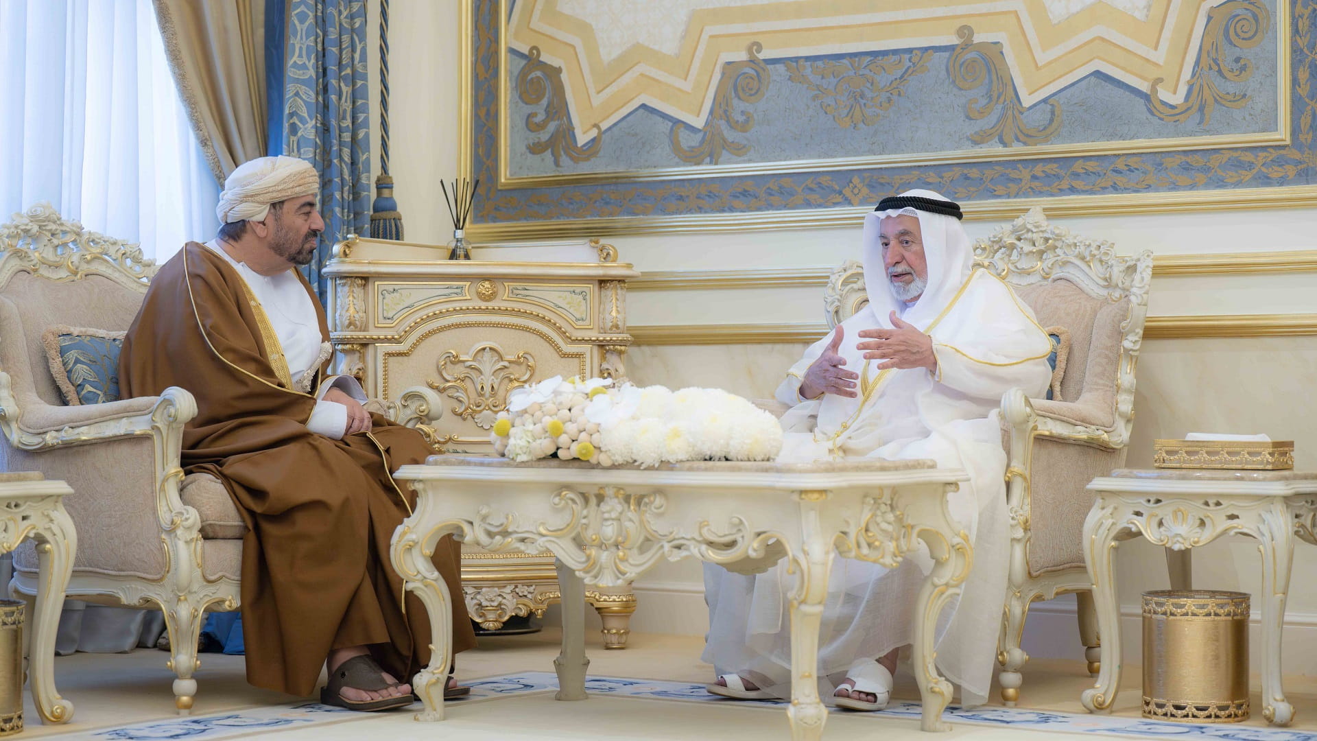 At the start of the meeting, Dr. Ahmed bin Hilal Al Busaidi extended heartfelt greetings from the Sultan of Oman to His Highness the Ruler of Sharjah. He expressed wishes for continued progress, prosperity, and growth for both the United Arab Emirates and Sharjah, as well as for His Highness's health and well-being.