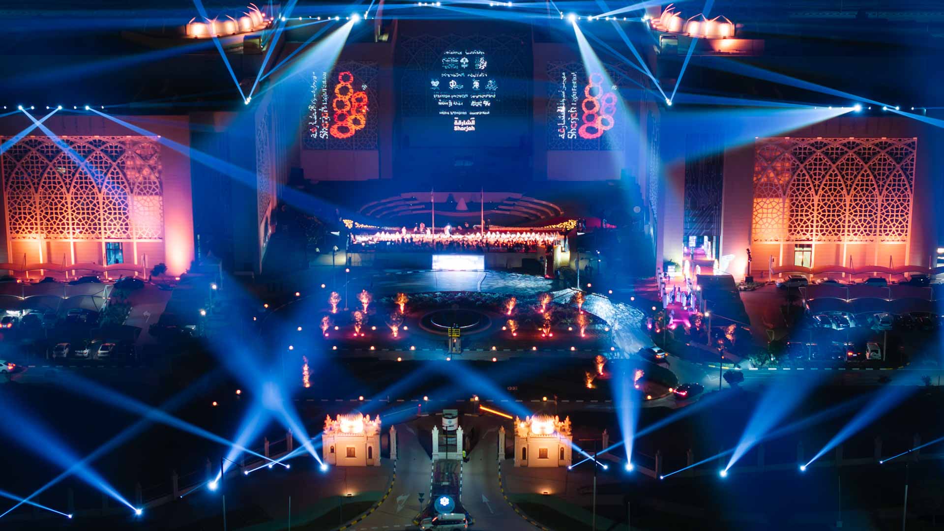 His Highness the Deputy Ruler of Sharjah attended the opening show, titled "The Story of an Exceptional Vision." The show depicted the remarkable vision of His Highness Sheikh Dr Sultan bin Mohammed Al Qasimi, Supreme Council Member and Ruler of Sharjah, which has turned Sharjah into a hub of culture and knowledge. Through vibrant and dazzling artistic displays, the show highlighted the ideas His Highness transformed into institutions thriving with science, thought, and culture.