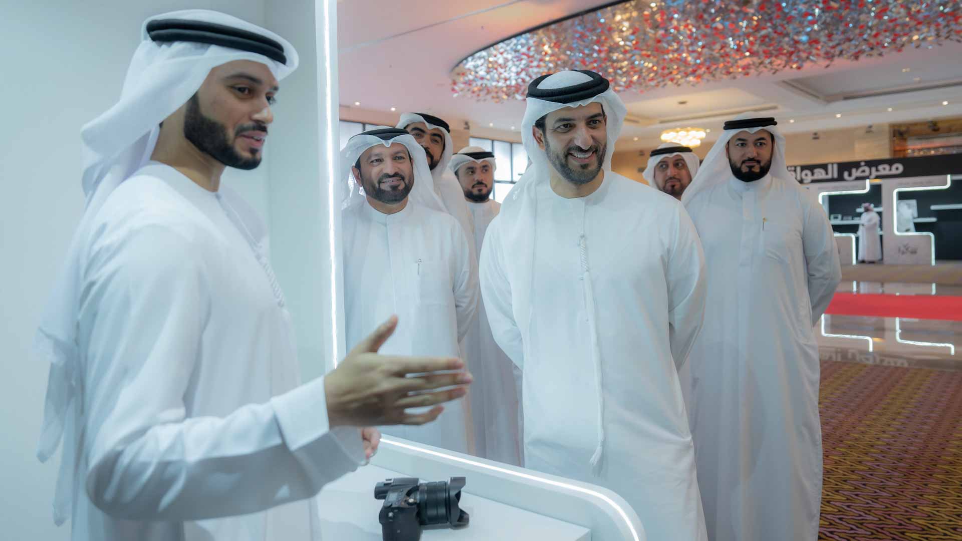 During the tour, His Highness was briefed on the various pavilions included in the exhibition, in which several male and female employees of the Authority participated. His Highness listened to a detailed explanation from the participants about what they offered, which highlighted the technical aspects and skills. The exhibition included multiple participations that included creative works, including: handicrafts, artistic drawings, installation works, electronics, and photography, reflecting the diversity of the participants' hobbies and interests.