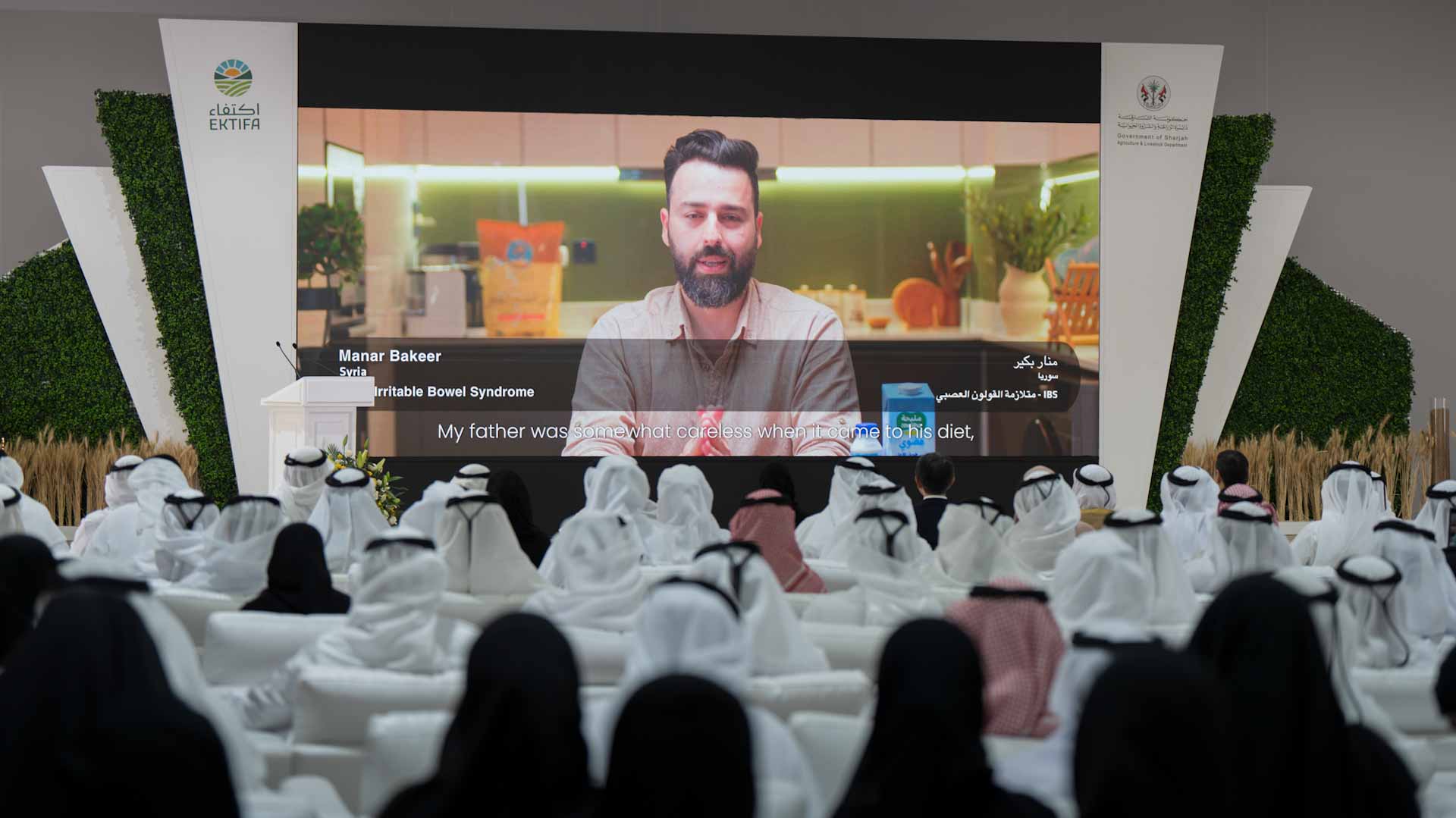 The harvest ceremony featured a traditional "Taghrooda" performance by a group of children, expressing their gratitude to His Highness the Ruler of Sharjah for his efforts in providing healthy and organic food. Additionally, Furthermore, His Highness viewed a unique video named "A Touch of Loyalty," featuring individuals from various nationalities who recounted their experiences with organic food produced by Iktifa. Participants emphasized the substantial health improvements they experienced, especially those who had previously faced challenges consuming milk, dairy products, and regular flour.