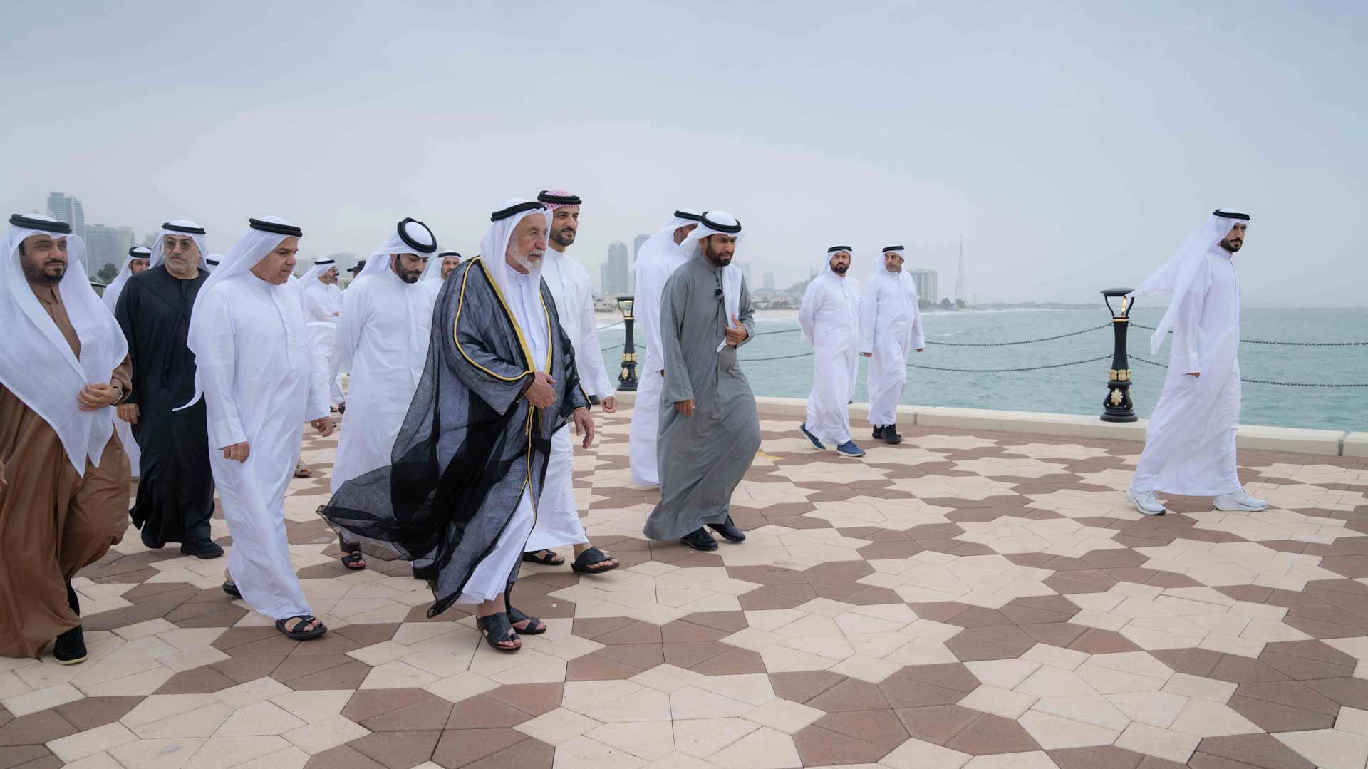 His Highness was briefed via a visual presentation on the project’s key stages, timeline, and execution phases, as well as future development plans for the area. He also learnt about the machinery and techniques used to complete this project, which aims to enhance water circulation in Khalid Lagoon by thereby improving its water renewal efficiency. In addition to the water canal, the project includes a breakwater, a waterfront promenade, bridges, and various service facilities.