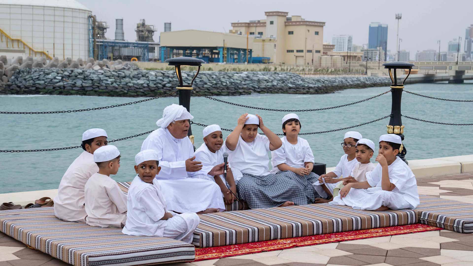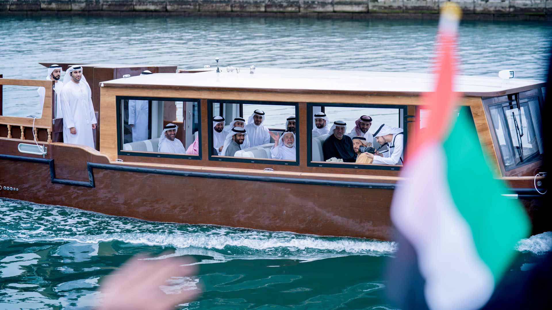 His Highness Sheikh Dr. Sultan bin Mohammed Al Qasimi, Supreme Council Member and Ruler of Sharjah, toured Al Layyah Canal by boat, observing the surrounding waterfront area and facilities designed to serve visitors. During the tour, His Highness watched traditional cultural performances and greeted children gathered along the canal’s edge, who warmly reciprocated his gesture.