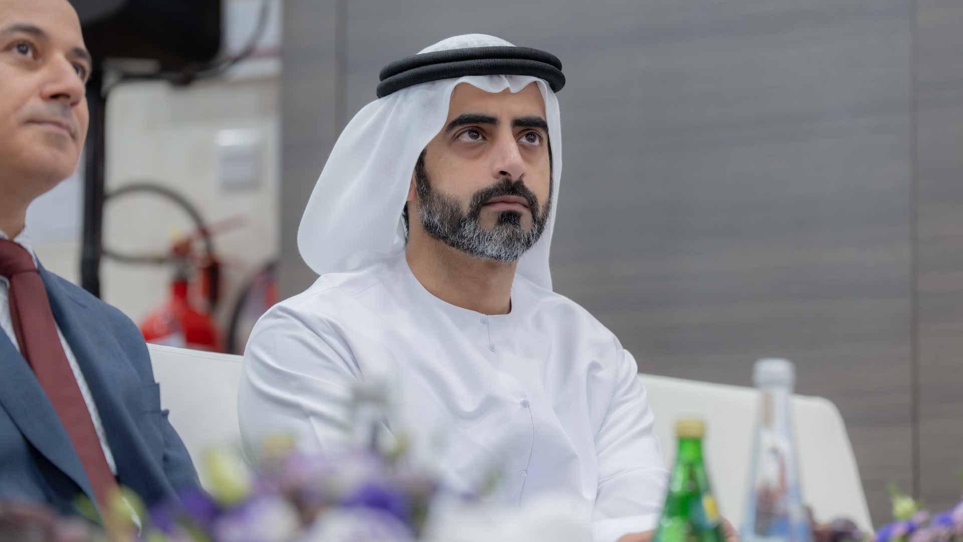 Sheikh Salem bin Abdulrahman Al Qasimi was presented with a commemorative gift—a key reference book on healthcare in the United Arab Emirates, authored by Professor Humaid Al Shamsi.