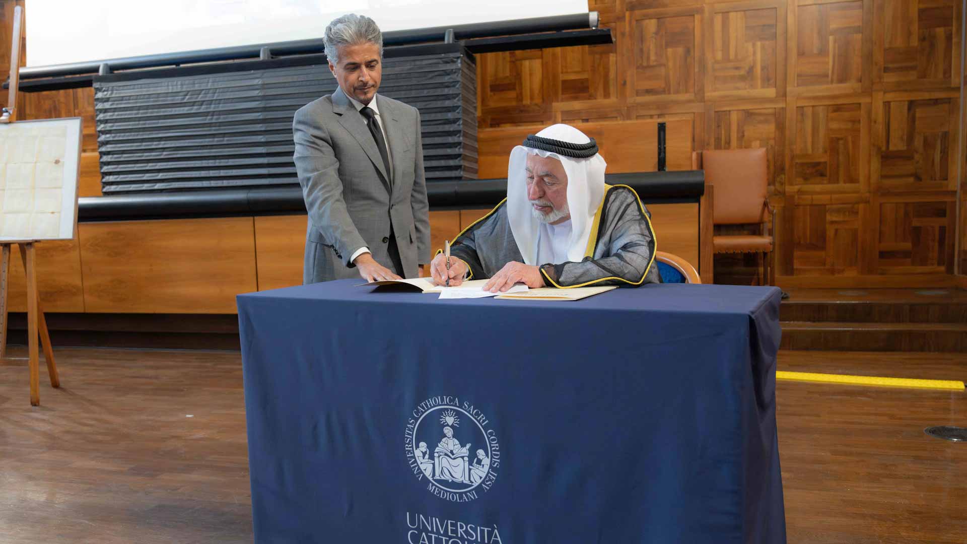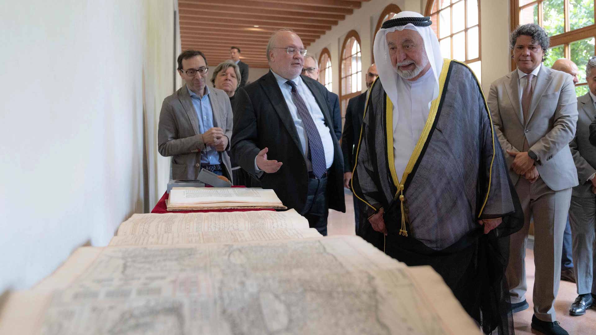 The gifting ceremony was attended by His Highness the Ruler of Sharjah, along with Abdullah Ali Al Subosi, Ambassador of the UAE to Italy, Ahmed bin Rakkad Al Ameri, CEO of Sharjah Book Authority (SBA), Elena Beccalli, Rector of Milan's Catholic University of the Sacred Heart, and several members of the administrative and academic bodies as well as university students.