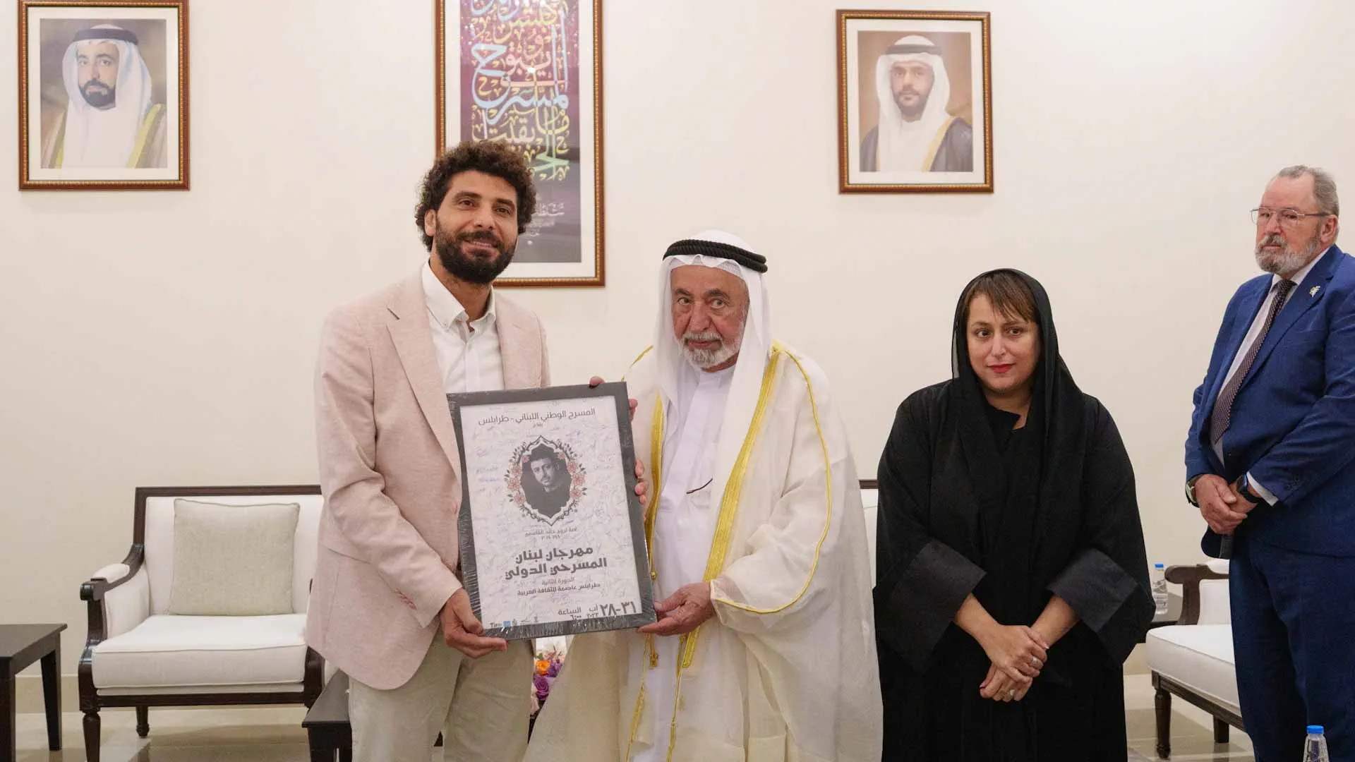 On the sidelines of the meeting, His Highness the Ruler of Sharjah received a commemorative plaque from the Lebanese National Theatre Festival, whose third edition's slogan was inspired by one of the famous works of the late Sheikh Khalid bin Sultan Al Qasimi. A film about his life and immortal artistic experience was screened during the festival, and the plaque was signed by all the artists who participated in the third edition.
