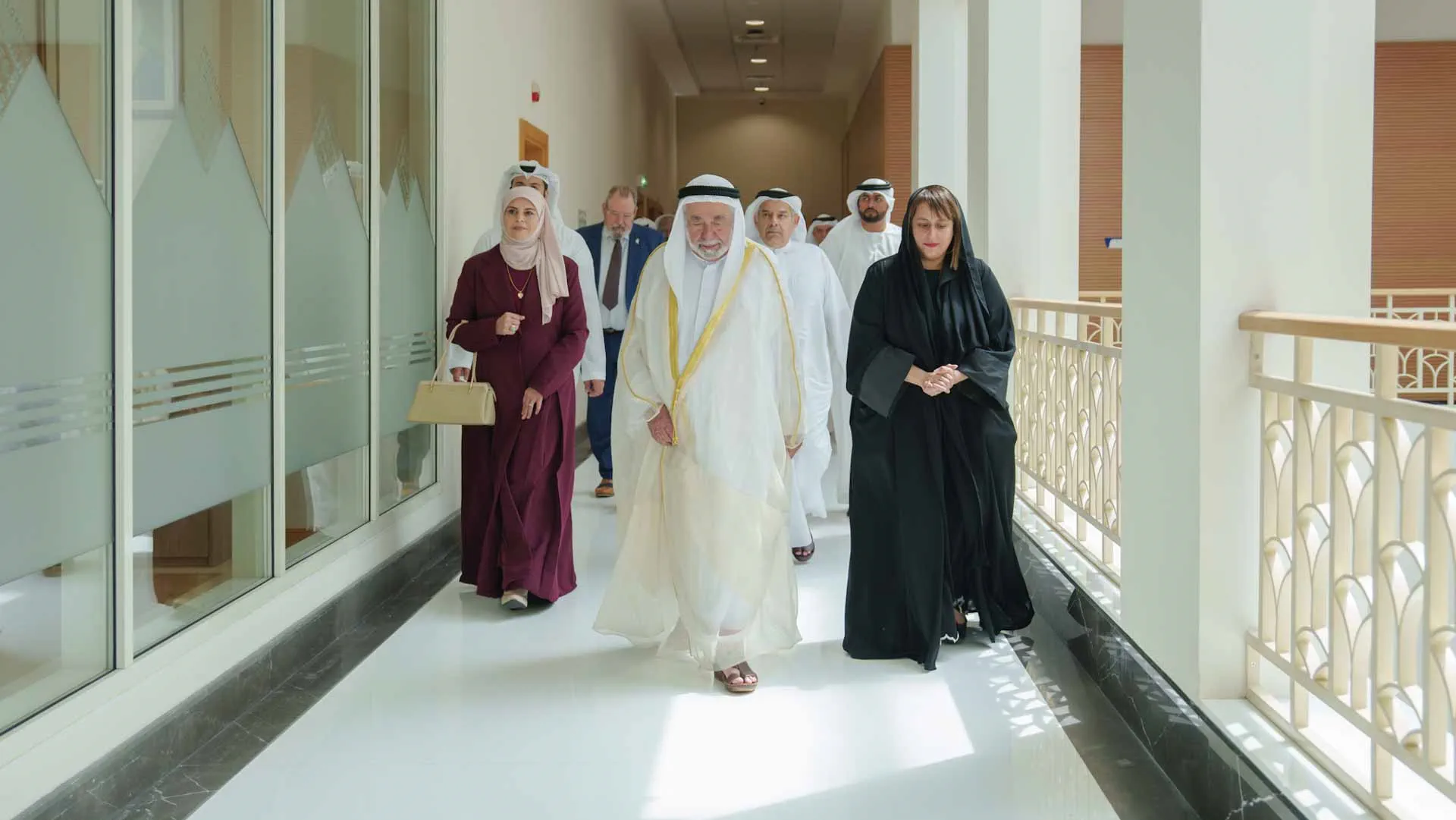 Alongside His Highness the Ruler of Sharjah, the meeting was attended by: Sheikha Hoor bint Sultan Al Qasimi, Chairperson of the Sharjah Art Foundation and Vice-Chairman of the Academy's Board of Trustees; Ismail Abdullah Ismail, Secretary-General of the Arab Theatre Authority; Dr. Habib Ghuloum Al Attar, Secretary-General of the Theatre Association; Dr. Peter Barlow, Executive Director of the Sharjah Performing Arts Academy; Ahmed Mohammed Bu Rahima, Director of the Theatre Department at the Department of Culture; Dr. Youssef Abdullah Eidabi, Cultural Advisor at the Dr. Sultan Al Qasimi Foundation; Qasim Istanbouli, Founder of the Lebanese National Theatre; Dr. Nadia Al Hassani, Dean of the College of Fine Arts and Design at the University of Sharjah; and Dr. Abeer Al Jundi.