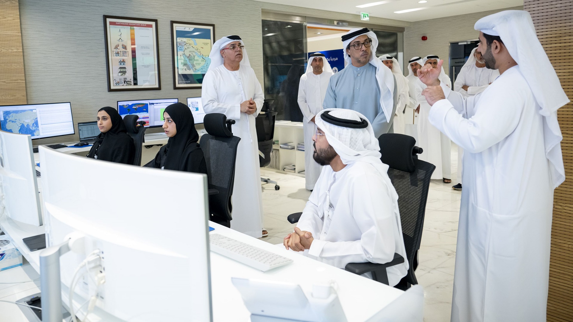 His Highness Sheikh Mansour also listened to a detailed explanation of the numerical weather prediction systems, which rely on a state-of-the-art supercomputer—one of the most advanced in the region—used for climate data analysis to enhance forecasting accuracy and improve early warning readiness.