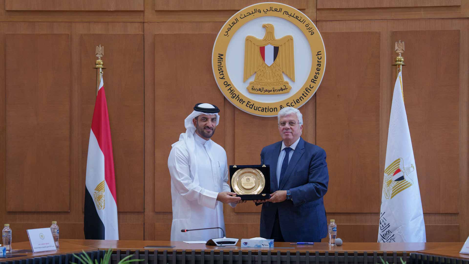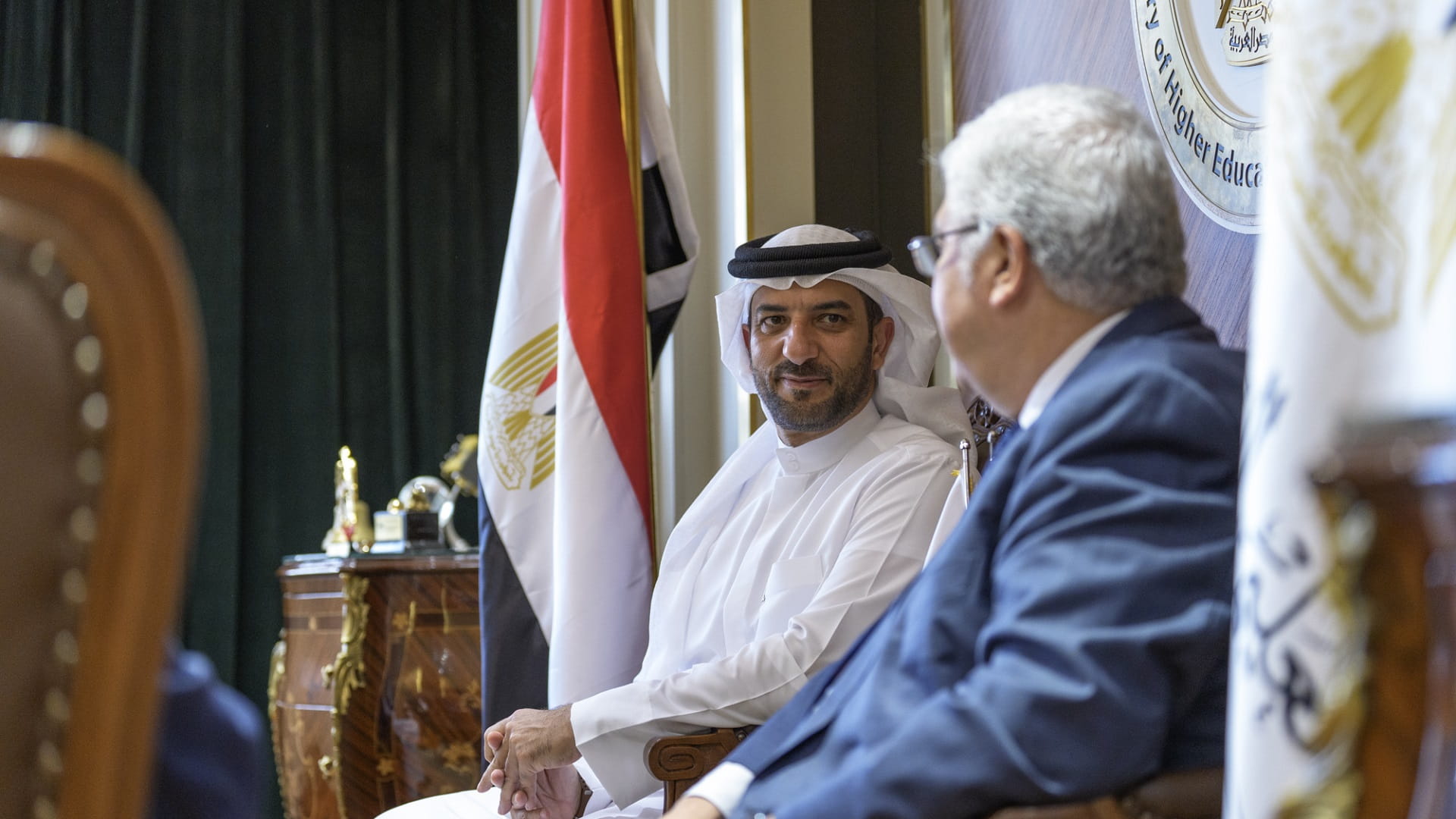 Dr Ashour warmly greeted His Highness and highlighted the strong relationship between Egypt and the United Arab Emirates. He shared Egypt's hope to deepen this connection by enhancing collaboration in education and research between the two countries.