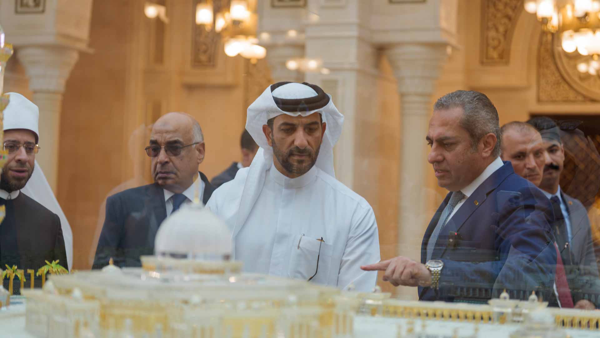 His Highness then visited the Quran House, situated beneath the courtyard of the Masjid Misr. While there, His Highness learned about the special room dedicated to Quran reciters. This room showcases the personal items and stories of notable Quran reciters from the country, including Sheikh Mahmoud Khalil Al Hosary, Sheikh Taha Al Fashni, and Sheikh Mustafa Ismail.