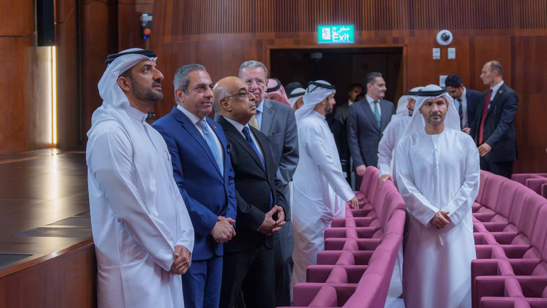 His Highness toured the impressive 650-seat Drama Hall, which spans two levels and is designed for performances, theater productions, and discussions. During the visit, His Highness was introduced to the cutting-edge technology used in the hall. This includes features such as multilingual translation services, the ability to automatically broadcast concerts and events on satellite channels, and high-quality sound and lighting systems to enhance the audience's experience.