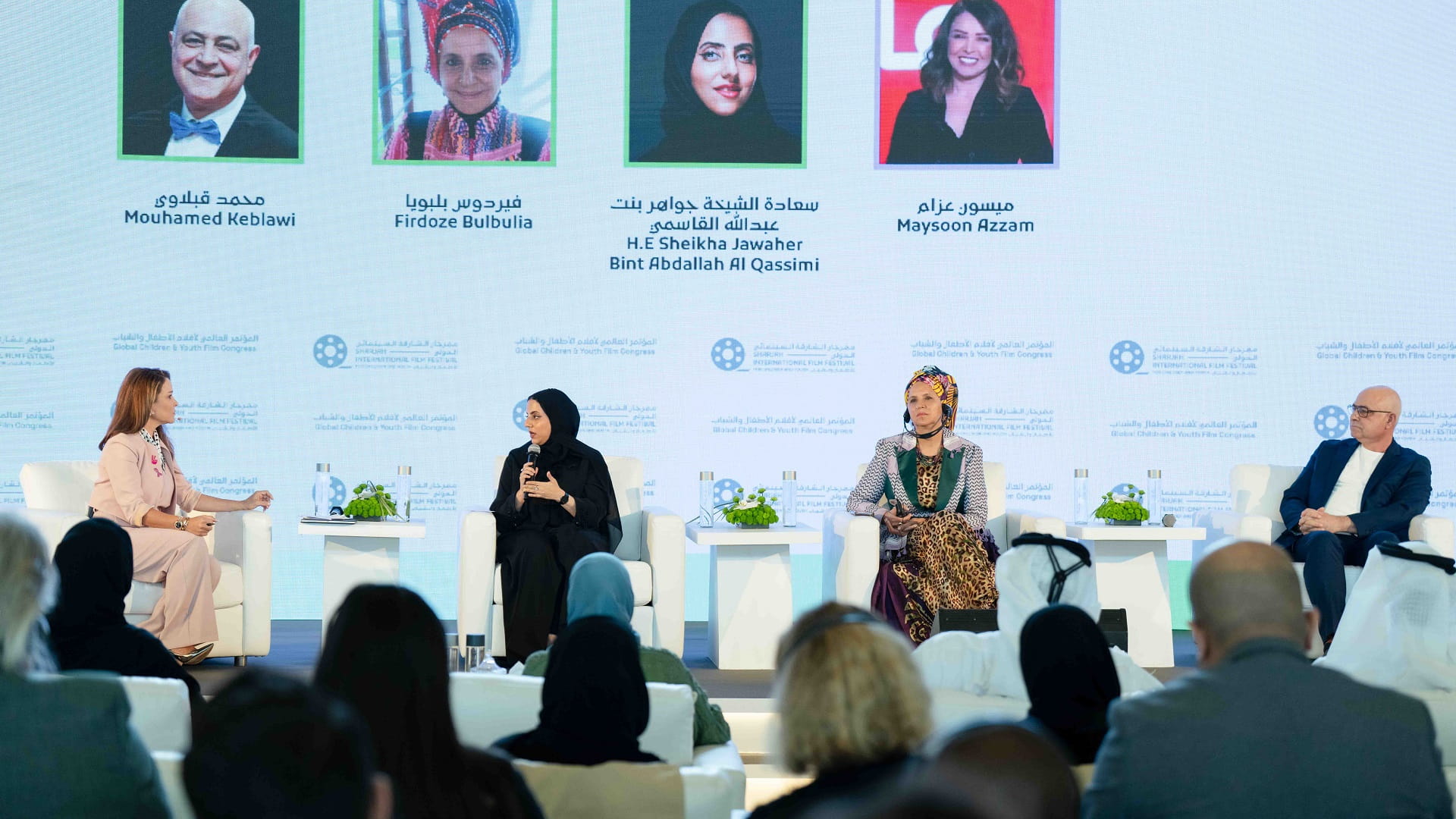 His Highness the Deputy Ruler and Her Highness Sheikha Jawaher bint Mohammed also attended a discussion session titled "Shining a Light on the Stories of Palestinian Children through Film" featured a panel of distinguished speakers: Sheikha Jawaher bint Abdullah; Ferdous Belboulia, the director of the Nelson Mandela Film Festival; and Mohammed Kablawi, the founder and CEO of the Malmö Arab Film Festival. They shared their insights and experiences in using cinema to amplify the voices of young Palestinians.