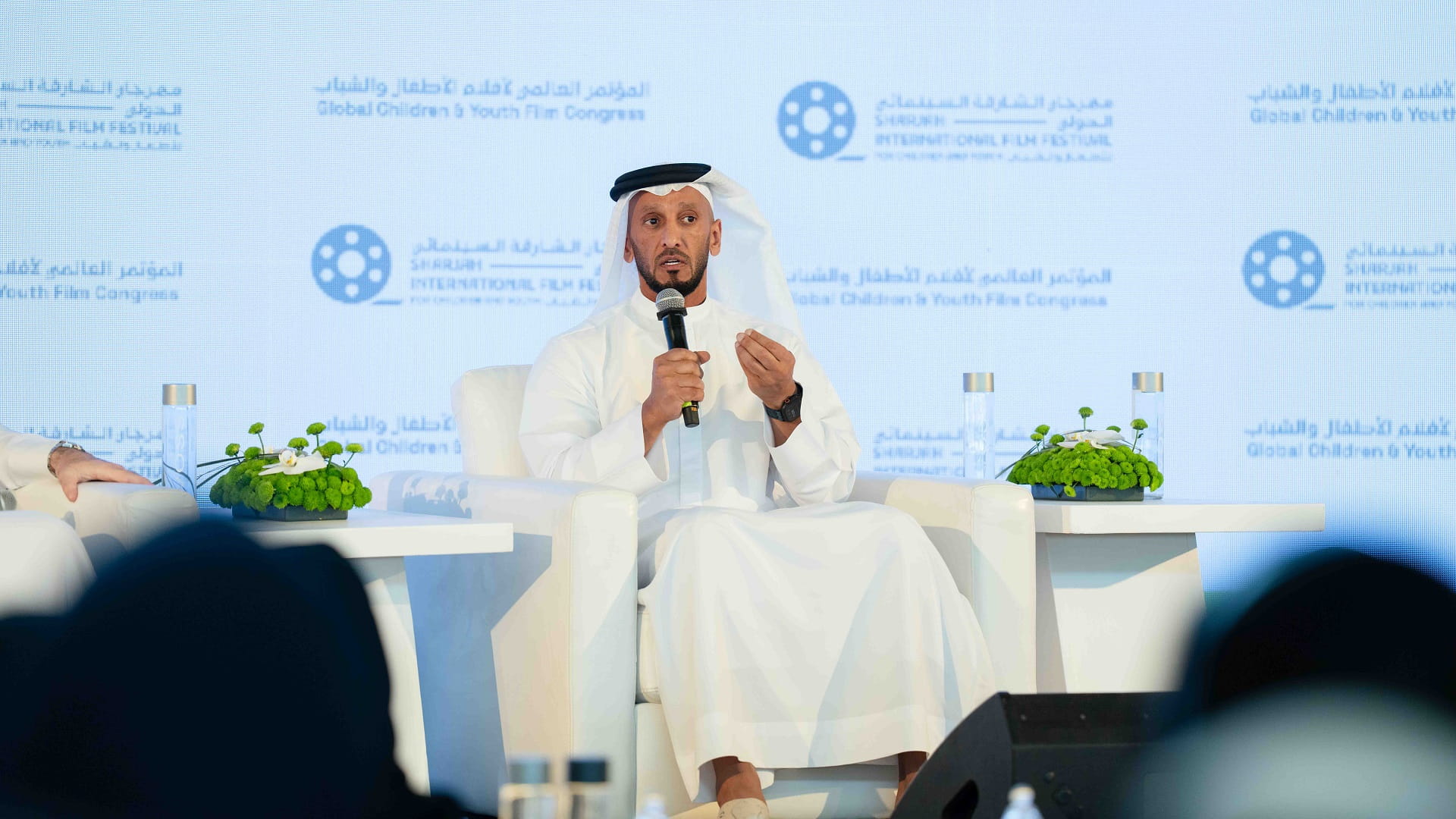 Sheikh Abdullah Al Hamed wrapped up his comments by highlighting the film festival's workshops and sessions that support the film industry. He also commended the Emirate of Sharjah for its efforts, which consistently aim for positive results and seek to make the most out of every event. He encouraged everyone to follow the guidance of our leaders, stay away from rumors and negativity, and get news from official sources within the country.