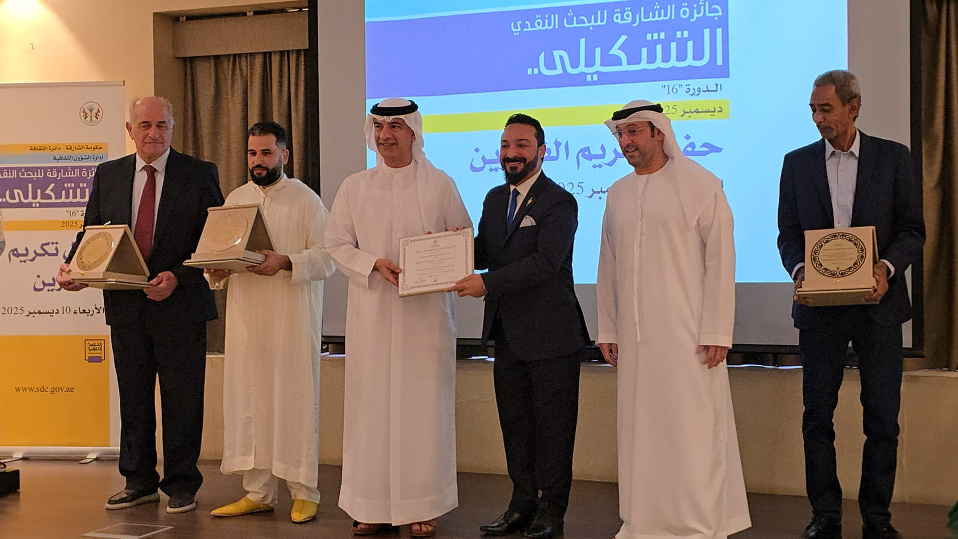 The judging panel for the 16th Sharjah Award for Critical Research in the Visual Arts included three esteemed scholars: Dr Farid Al Zahy from Morocco, Dr Iyad Hussein Abdullah from Iraq, and Dr Mohammed Abdul Rahman Hassan from Sudan.